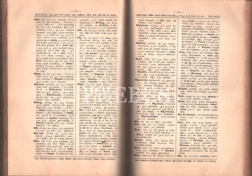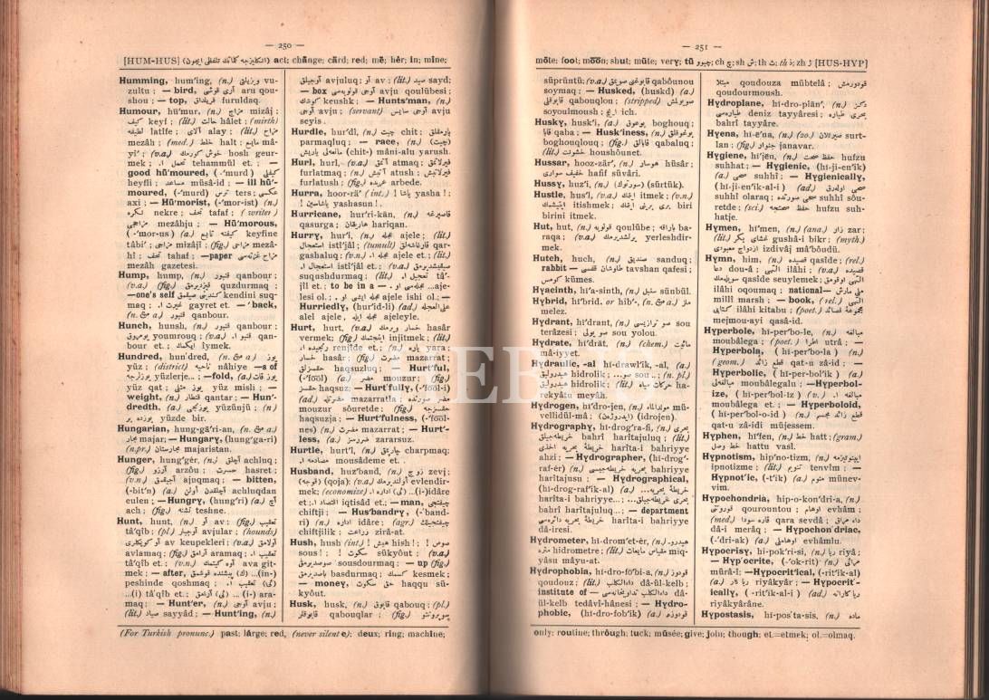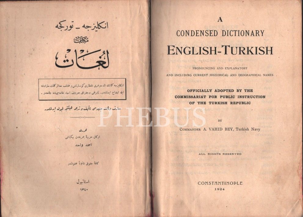 Sözlük: İNGİLİZCE-TÜRKÇE [Osmanlıca] LÜGÂT, Binbaşı Ahmed Bahri, İstanbul 1924, 720 s., 18x25 cm