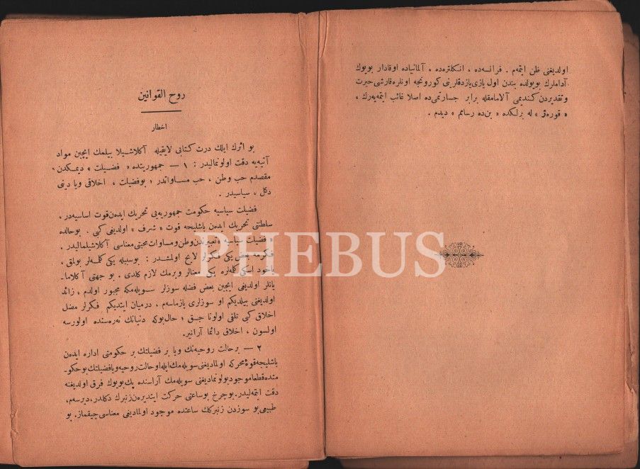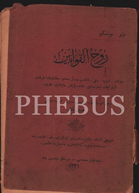 Düşünce tarihi: RÛHU´L-KAVÂNÎN [Kanunların Ruhu], Montesquieu, çev. Hüseyin Nazım, Sancakciyan Matbaası, İstanbul 1331, 160 s., 14x20 cm