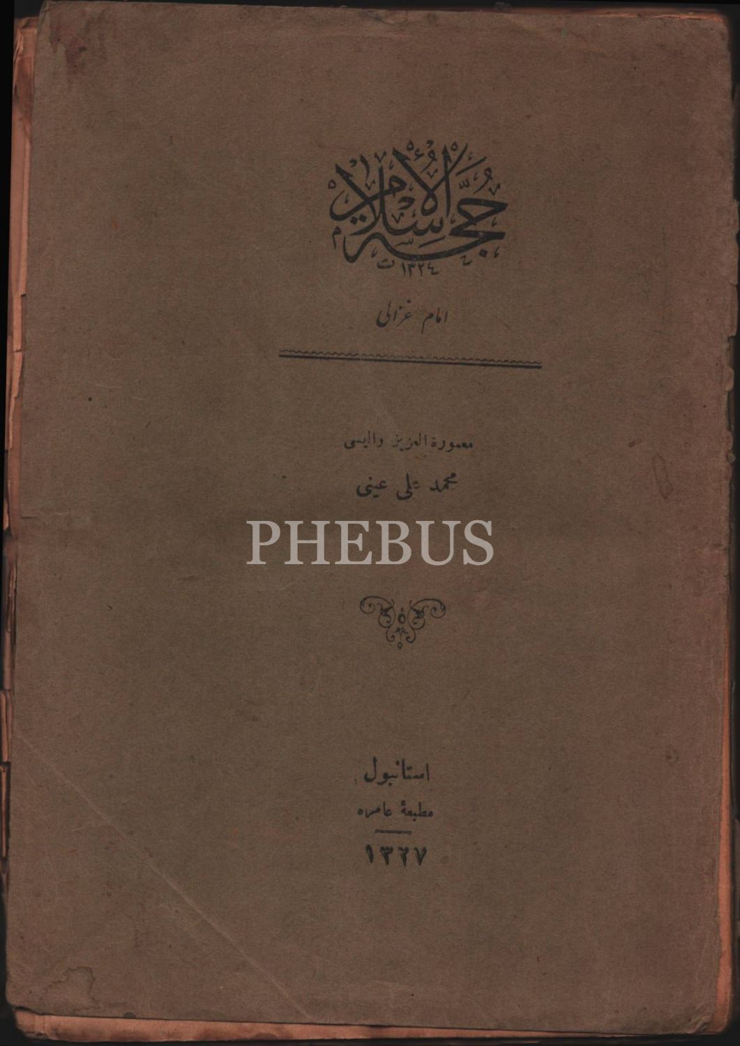 HUCCETÜ´L-İSLÂM İMÂM GAZZÂLÎ, Mehmed Ali Ayni, Amire Matbaası, İstanbul 1327, 367 s., 14x21 cm, ön kapak sayfası ayrık haliyle