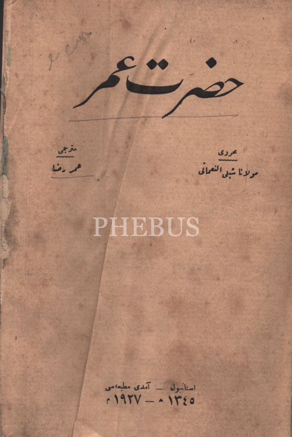 HAZRET-İ ÖMER, Mevlana Şibli en-Numani, çev. Ömer Rıza, Amedi Matbaası, İstanbul 1927, 520 s., 15x20 cm