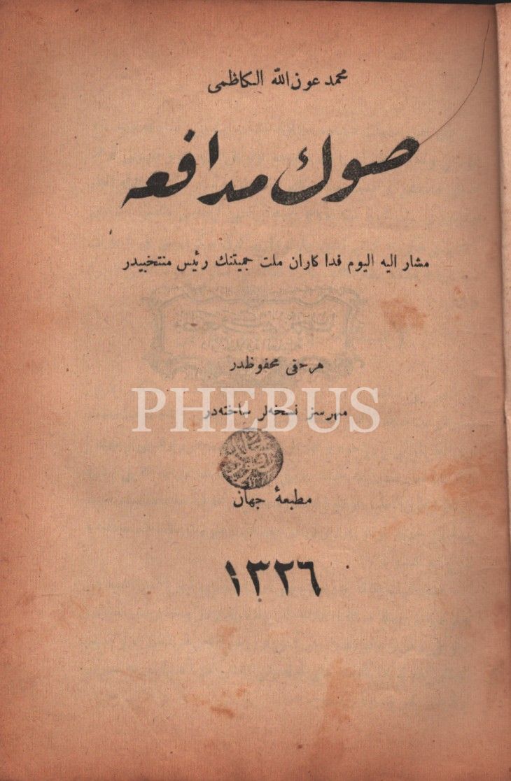 SON MÜDÂFAA, Mehmed Avnullah el-Kâzımi, Cihan Matbaası, İstanbul 1326,40 s., 13x19 cm