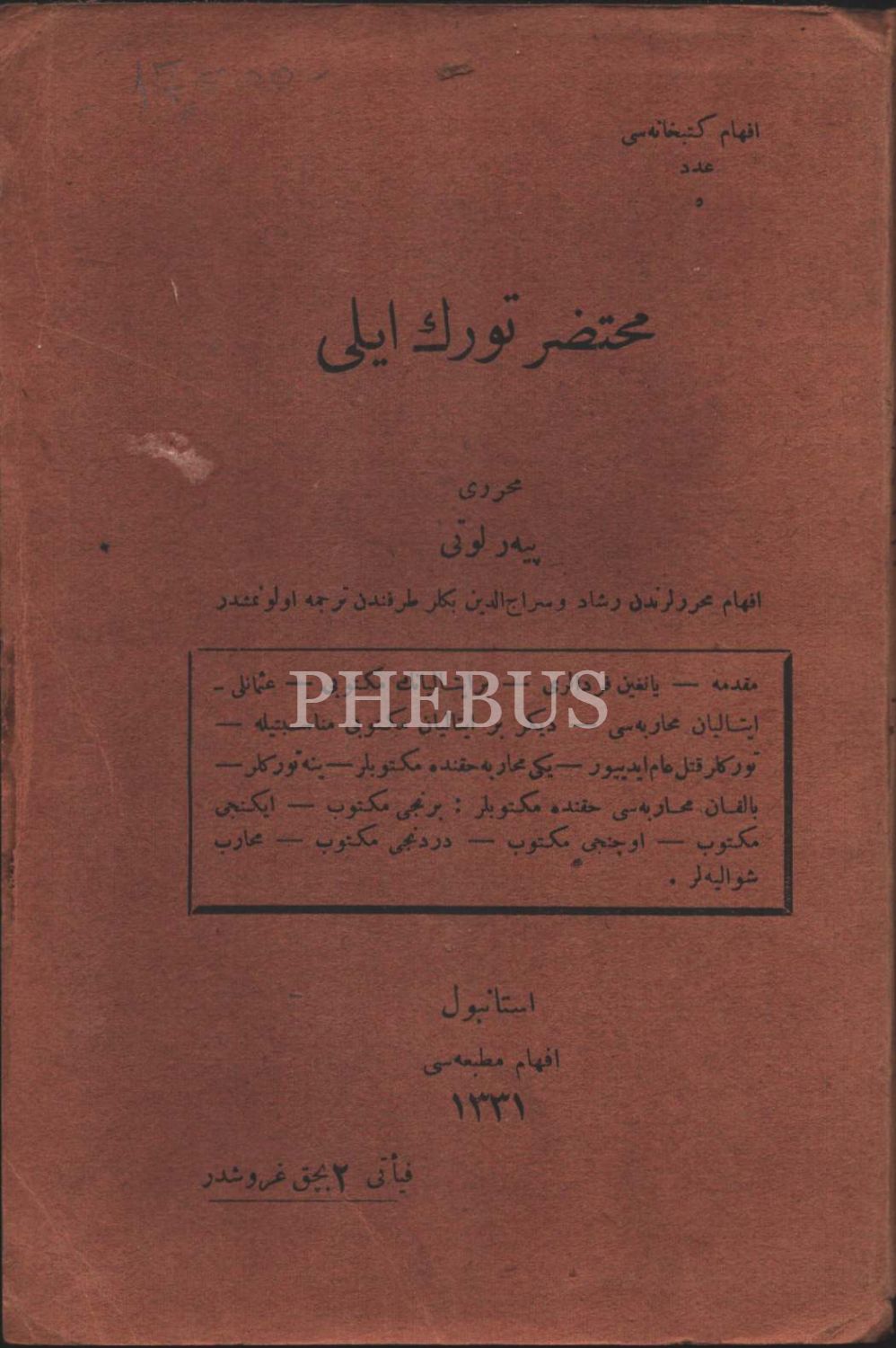 MUHTASAR TÜRK İLİ, Pierre Loti, İfham Matbaası, İstanbul 1331, 83 s., 13x20 cm