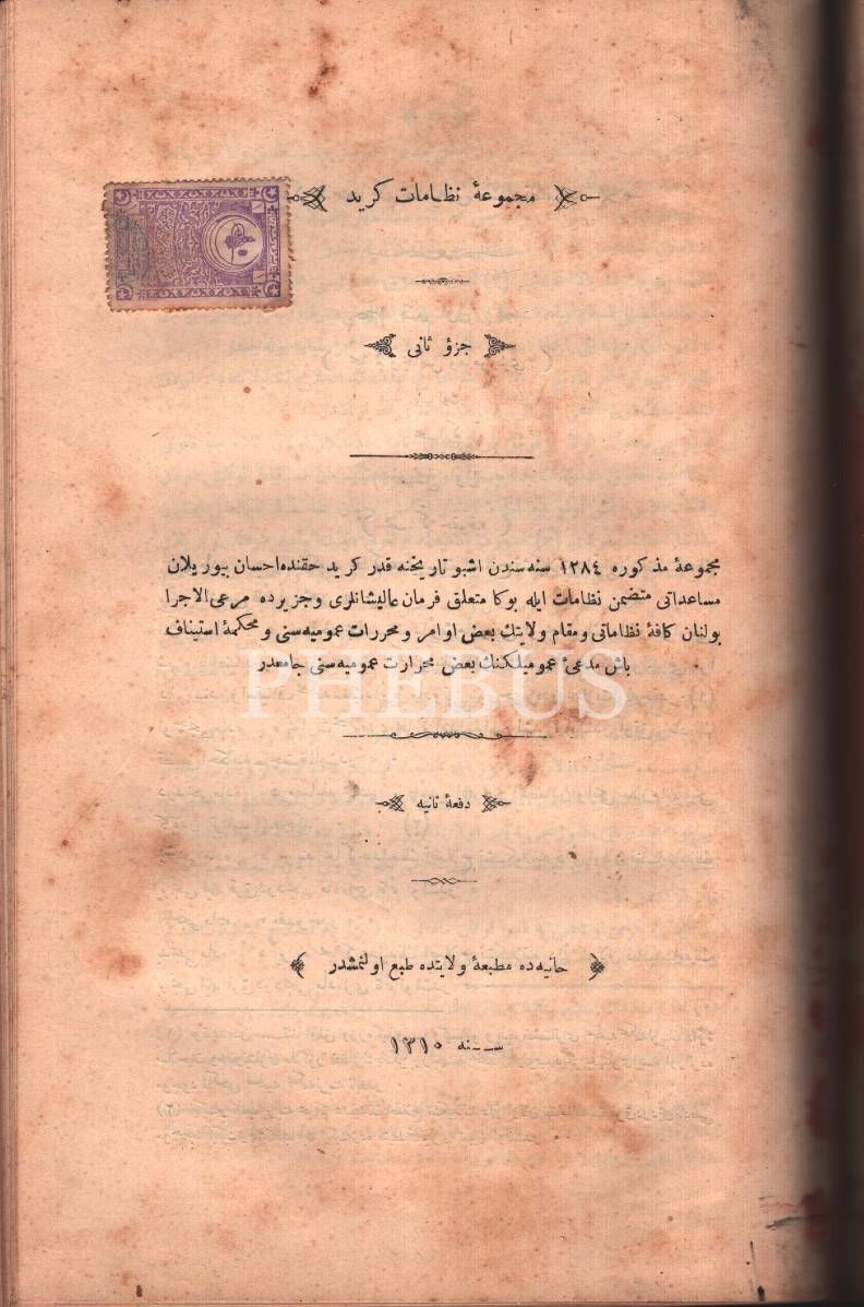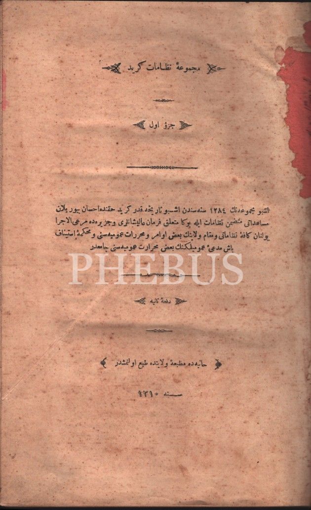 Siyaset tarihi: MECMÛA-İ NİZÂMÂT-I GİRİD (2 cilt bir arada), Vilayet Matbaası, Hanya 1310, 303+335 s., 19x28 cm