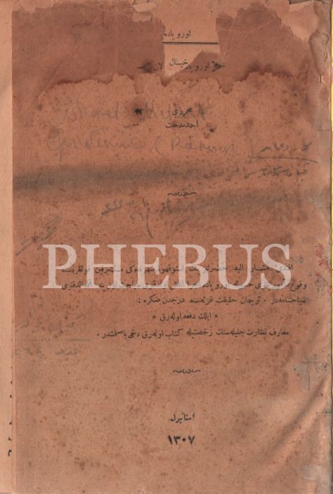 Edebiyat tarihi: AVRUPA´DA BİR CEVELÂN, Ahmed Midhat, İstanbul 1307, 1044 s., 17x25 cm, birkaç sayfasının kenarları yenik haliyle