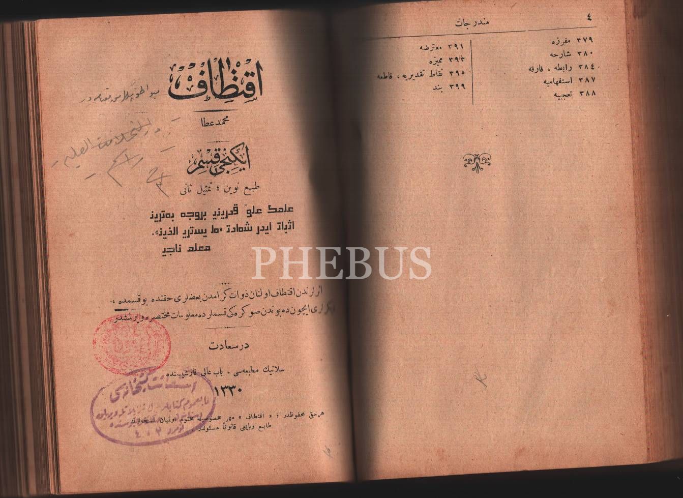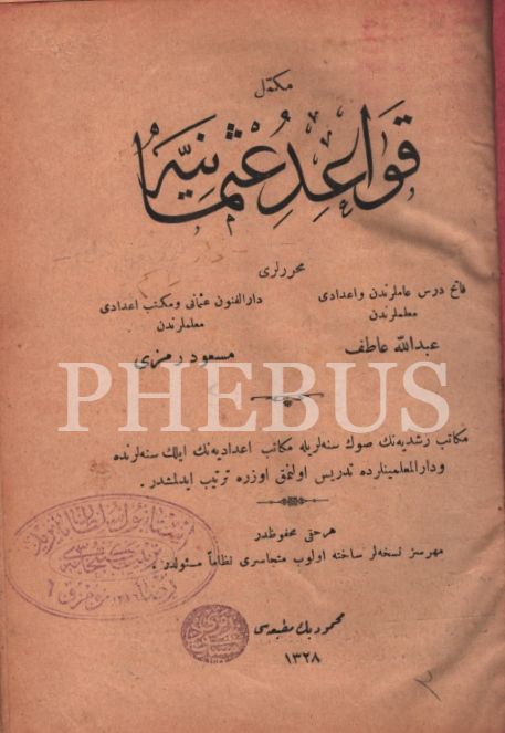 3 eser tek cilte: Mükemmel KAVÂİD-İ OSMÂNİYYE, Abdullah Atıf-Mesud Remzi, Mahmud Bey Matbaası, 1328, 412 s.; İKTİTÂF (2. Kısım), Mehmed Atâ, Selanik Matbaası, İstanbul 1330, 158 s.;
