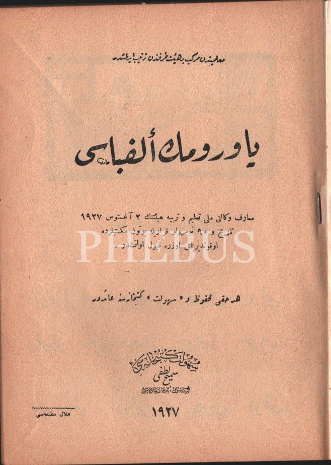 Eğitim tarihi: YAVRUMUN ELİFBÂSI, Hilal Matbaası, İstanbul 1927, 63 s., 14x19 cm