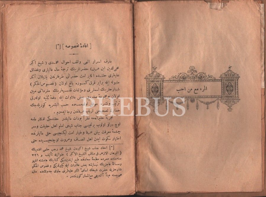 MİR´ÂT-I HAZRET-İ MUHYİDDİN İBN ARABÎ, Hocazâde Ahmed Hilmi, A. Asaduryan Şirket-i Mürettibiye Matbaası, İstanbul 1315, 16 s., 14x20 cm