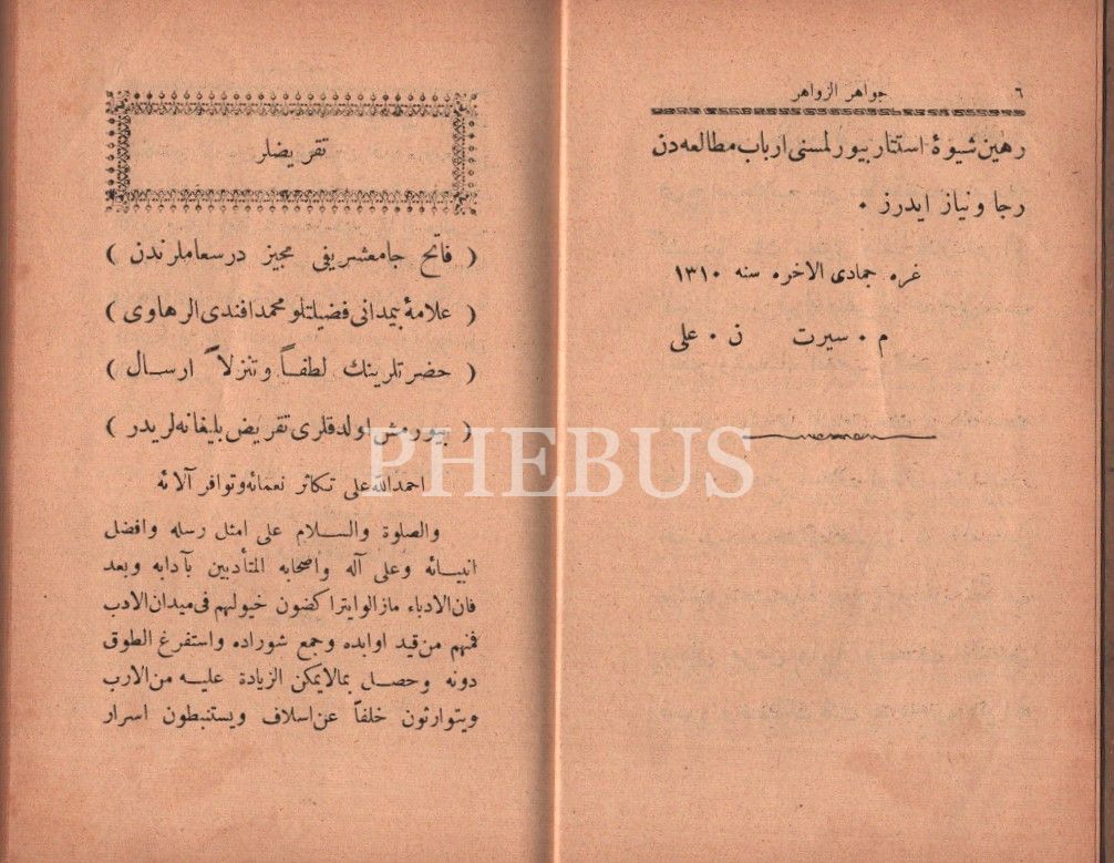 CEVÂHİRÜ´Z-ZEVÂHİR, N. Ali- M. Siret, Enver Efendi Matbaası, İstanbul 1310, 144 s., 11x17 cm