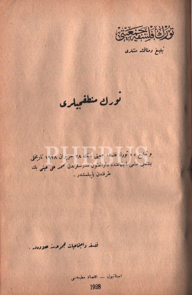 Düşünce tarihi: FELSEFE VE İCTİMÂİYYÂT MECMÛASI´nın 1928 tarihli 7. sayısı ile Mehmed Ali Ayni´nin 1928 tarihli TÜRK MANTIKÇILARI tebliğinin metni aynı ciltte, 72+14 s., 16x23 cm