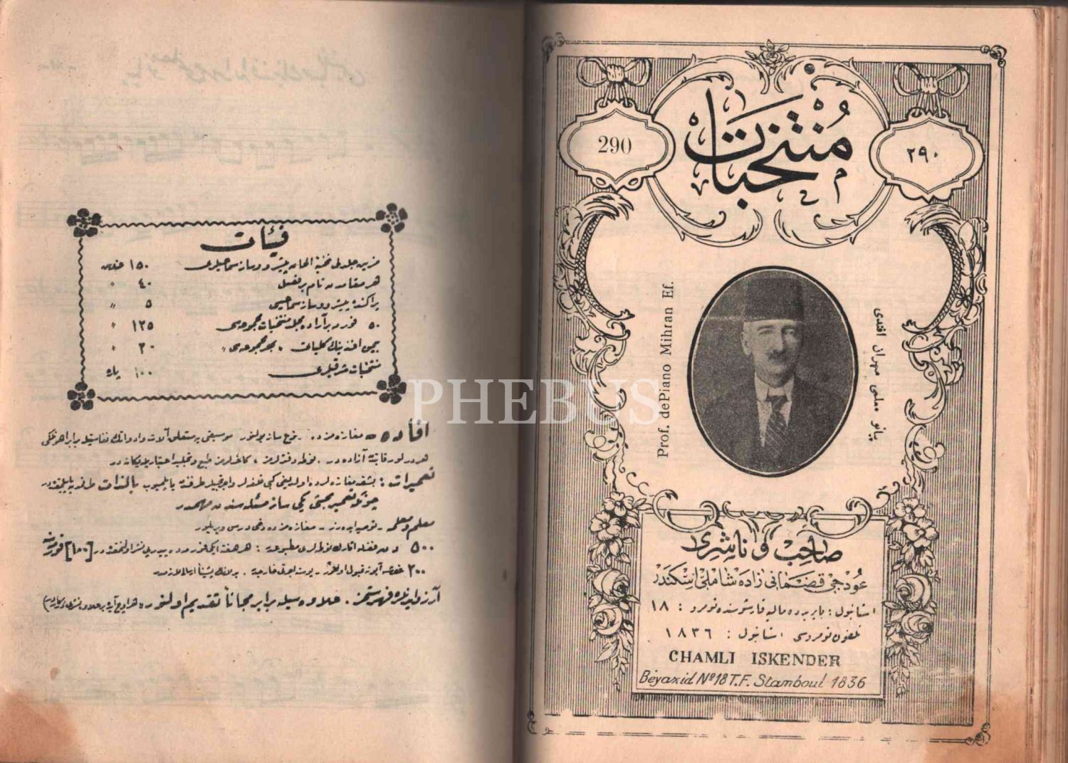 İçerisinde Bestekâr Bimen Efendi, Piyano Muallimi Mihran Efendi, Tanburi Cemil Bey, Musiki Muallimi İzzeddin Servet Bey, Bestekâr Muhlis Sabahaddin Bey, Kemani Mustafa Bey vd.´ne ait notalar mevcuttur.