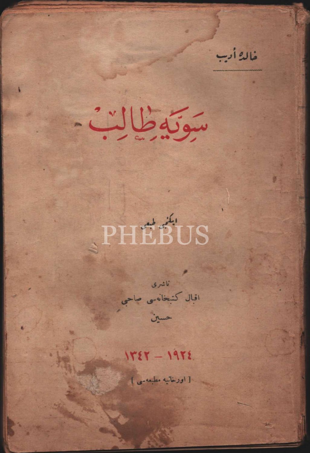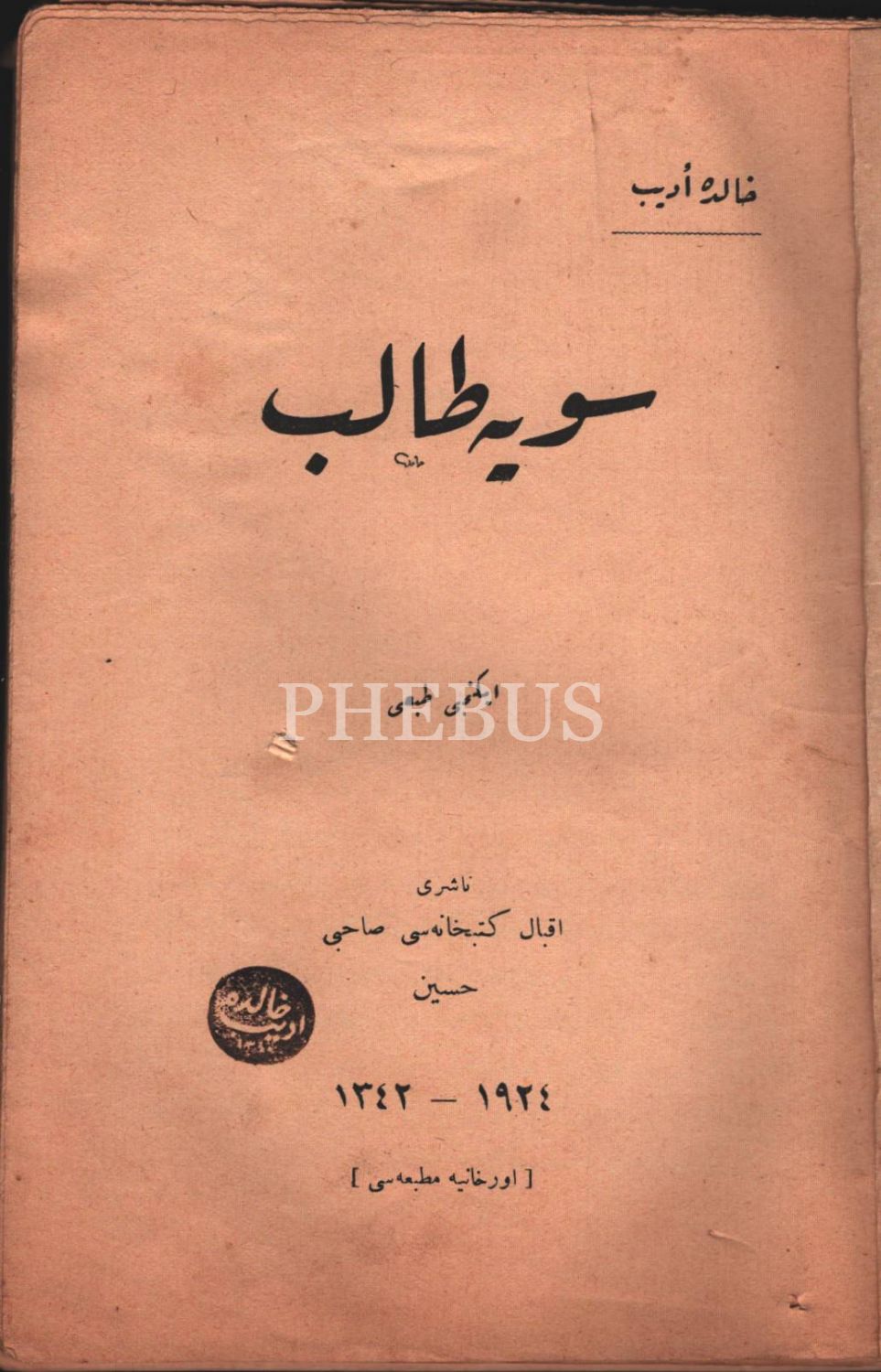 Edebiyat tarihi: SEVİYYE TÂLİB, Halide Edib [Adıvar], Orhaniye Matbaası, 1924, 152 s., 14x20 cm