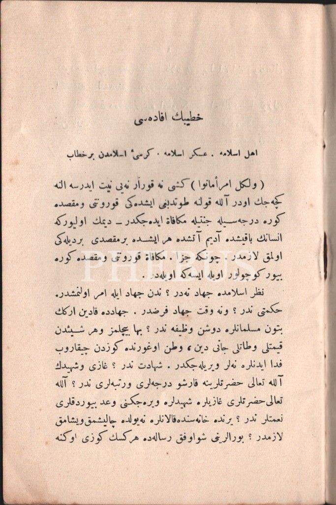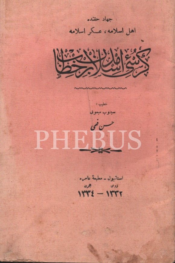 Cihâd Hakkında Ehl-i İslâm´a, Asker-i İslâm´a KÜRSİ-İ İSLÂM´DAN BİR HİTÂB, Hasan Fehmi, Amire Matbaası, İstanbul 1334, 23 s., 12x19 cm