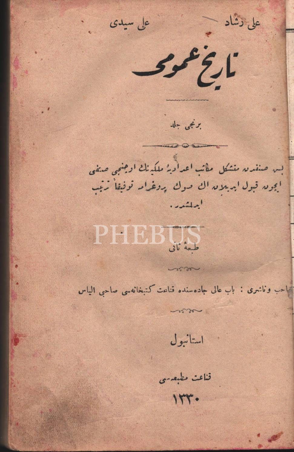 Eğitim tarihi: TÂRÎH-İ UMÛMÎ (1. Cilt), Ali Reşad- Ali Seydi, Kanaat Matbaası, İstanbul 1330, 162 s., 14x19 cm