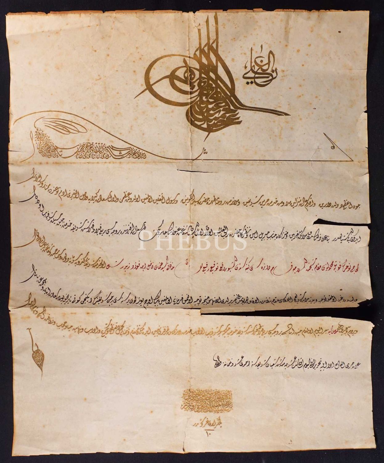 Meşîhat-i İslâmiyye Kassâm Dairesi kâtiplerinden Seyyid Osman Fazıl´a verilen feraşet beratı, el-Gazi [Sultan II. Abdülhamid] tuğralı ve 1311 tarihli, 49x60 cm