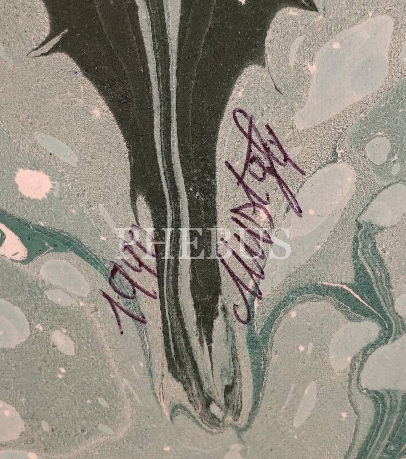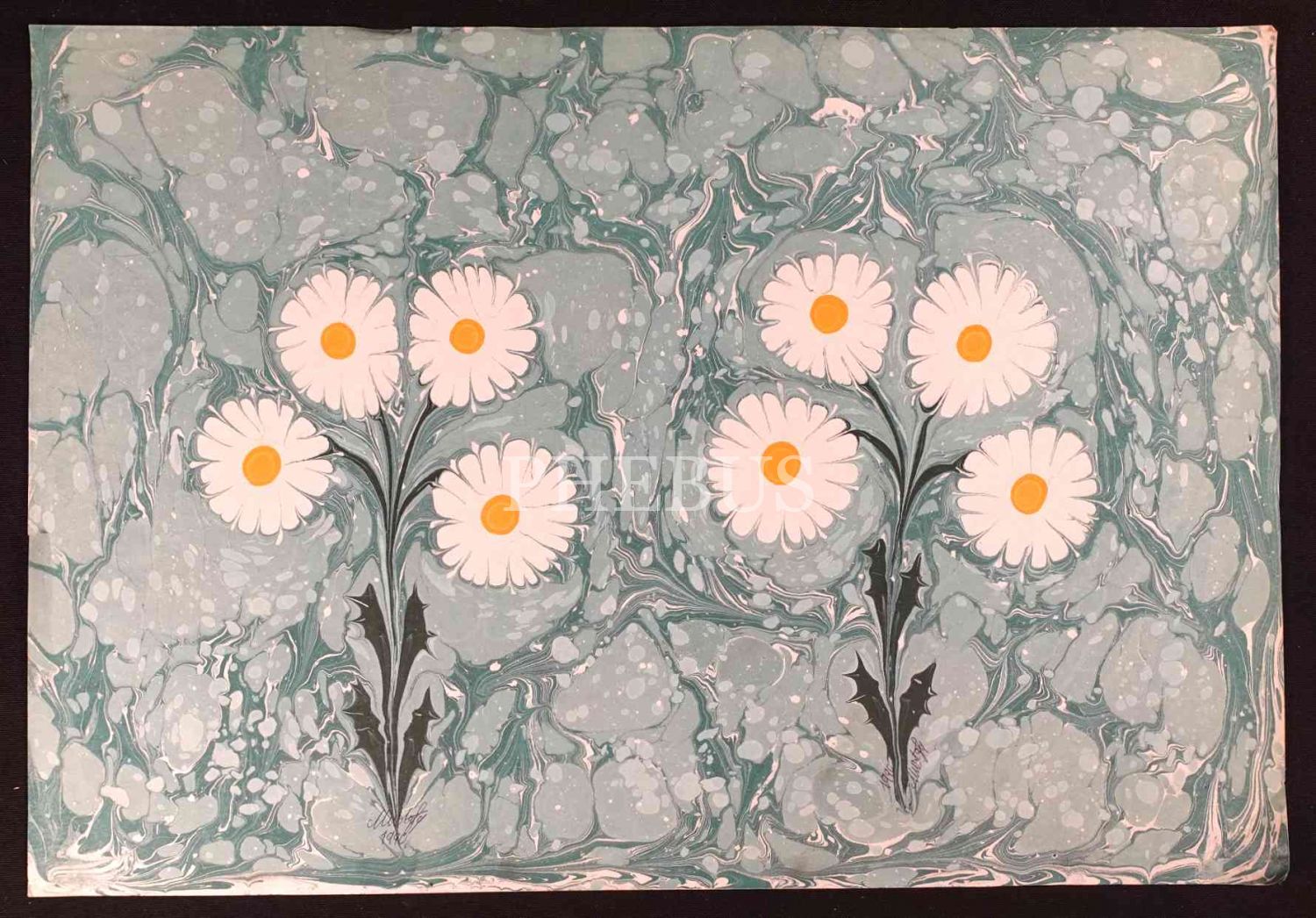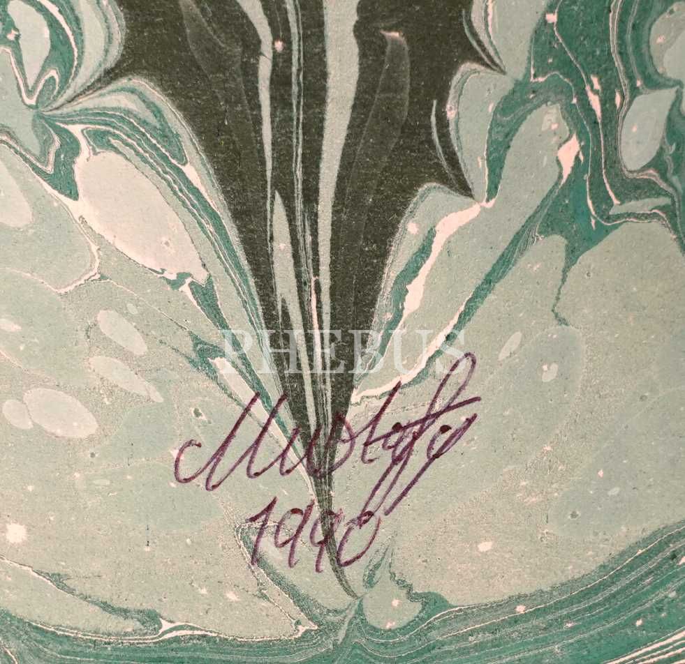 Mustafa Düzgünman çift imzalı ve 1990 tarihli çiçek ebrusu, 34x49 cm