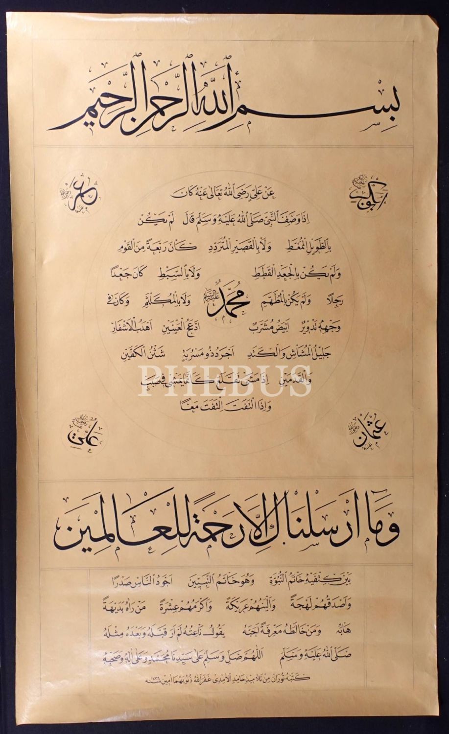 Turan Sevgili ketebeli, 1436 tarihli sülüs-nesih hilye-i şerîf, 54x90 cm