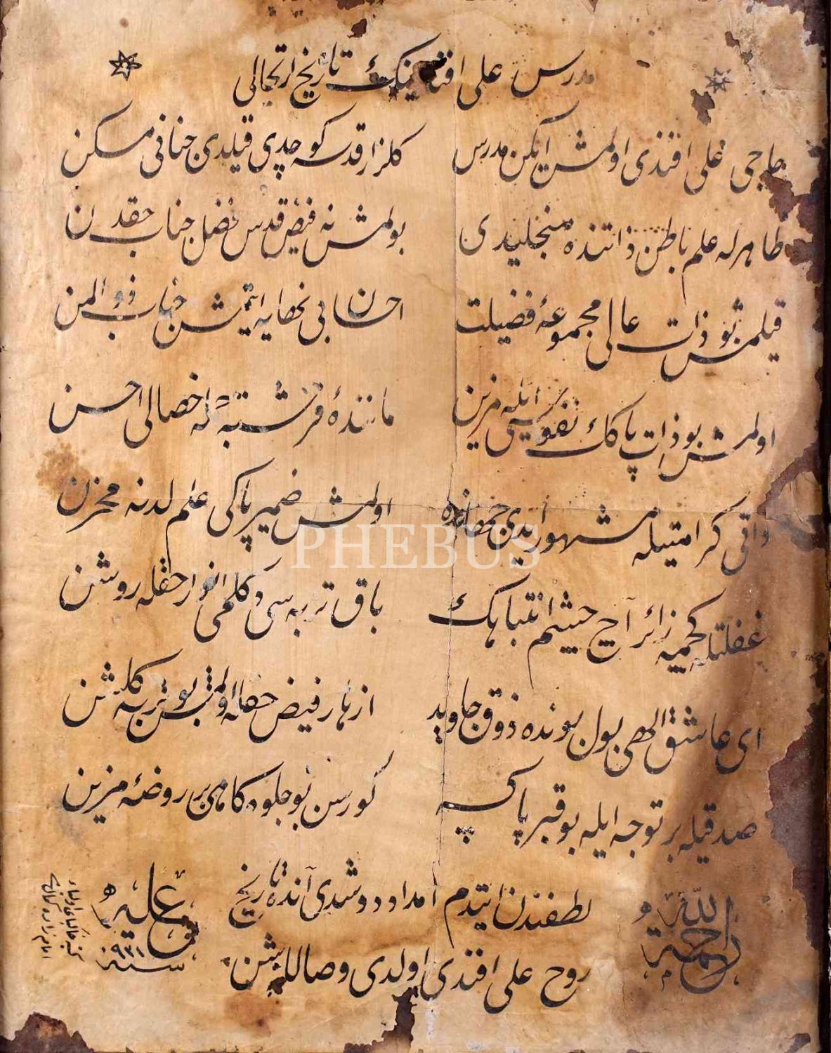 Müderris Ali Efendi'nin vefat tarihi için yazılmış şiir, İmamzâde Kemal ketebeli ve 921 tarihli ta´lik yazı ile, 34x41 cm