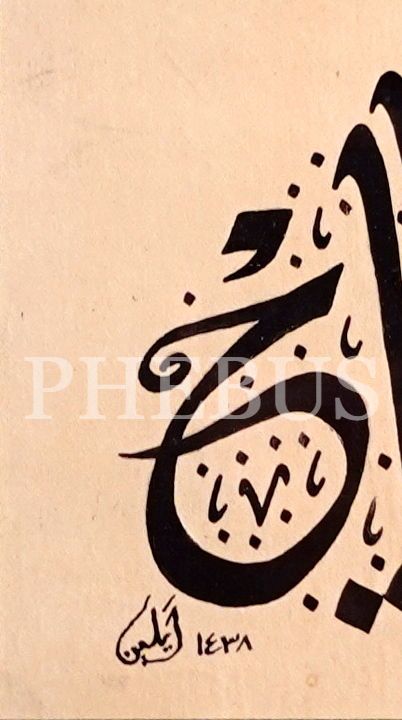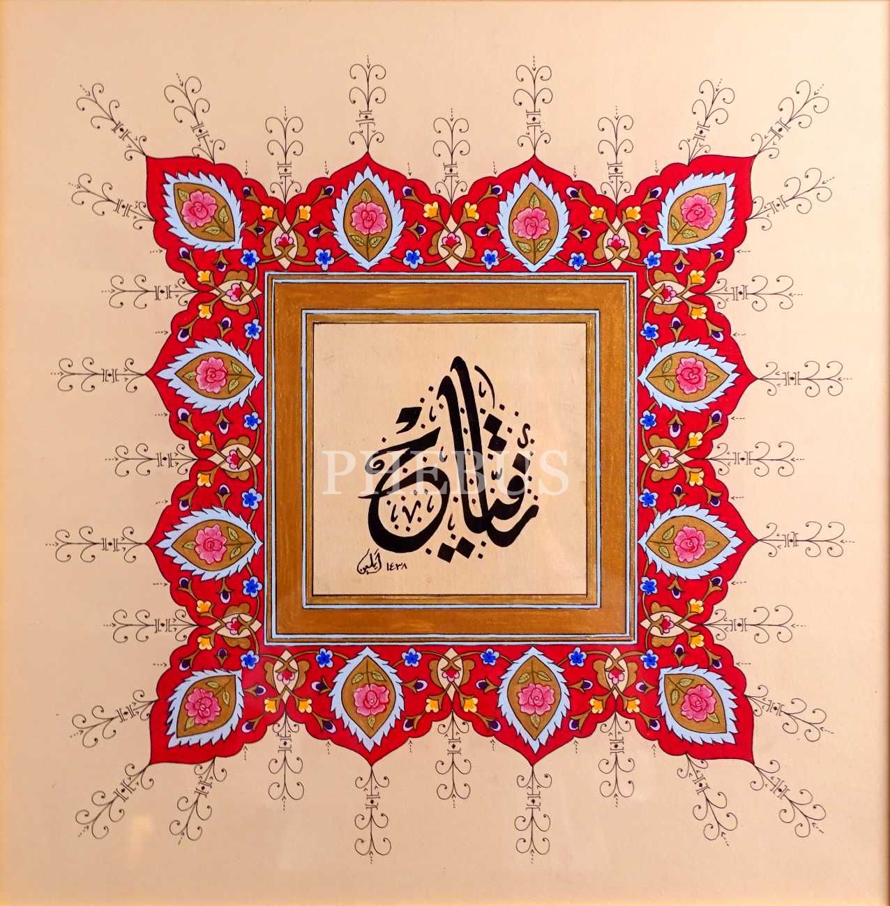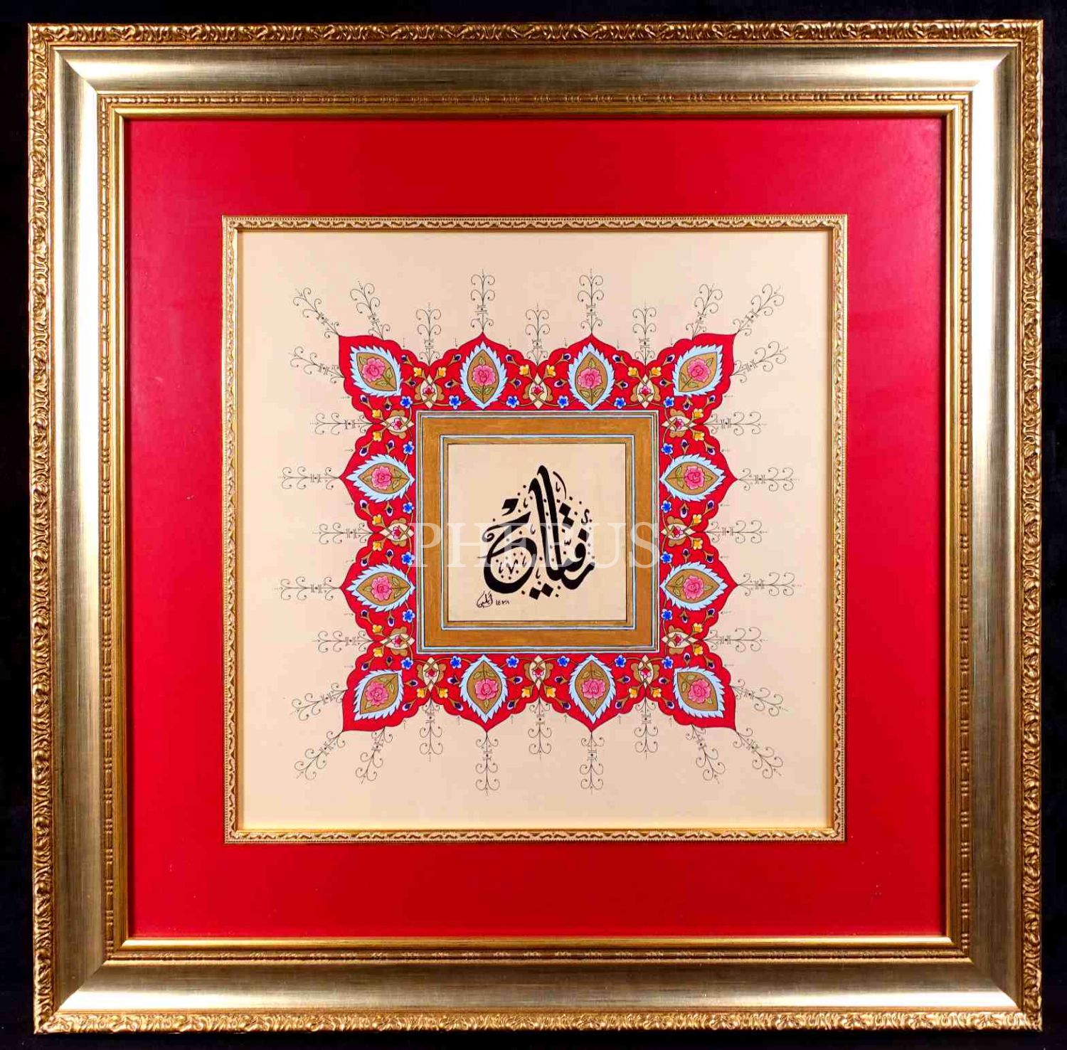 Aylin (Cemilgil) ketebeli celî divâni, tezhipli yazı: "Yâ Fettâh", 57x57 cm