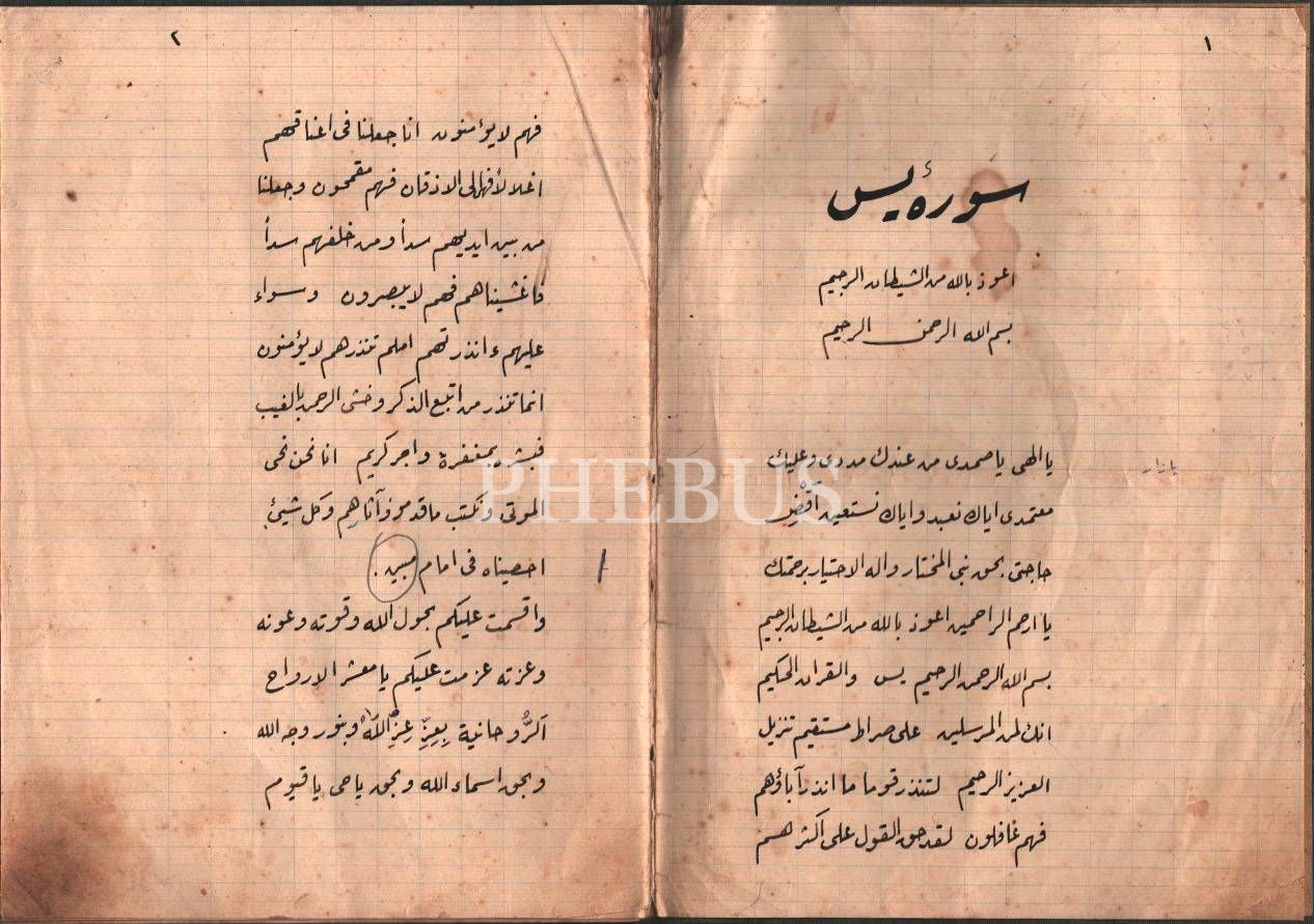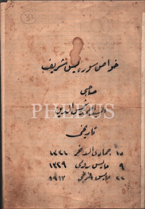 Defter formunda HAVASS-I YÂSÎN-İ ŞERÎF, 1912 tarihli, 19 sayfa, 14x20 cm