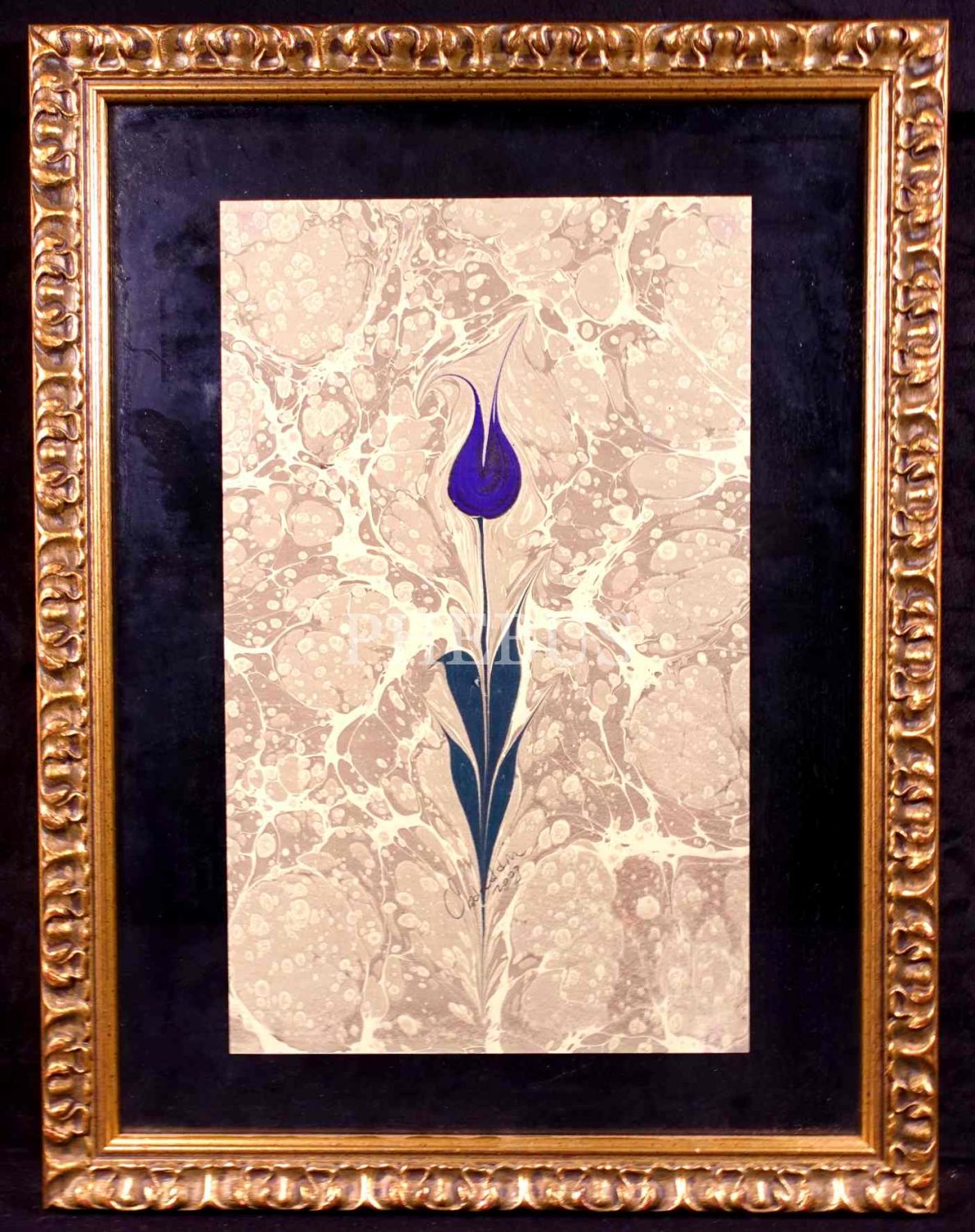 Sadrettin Özçimi imzalı, 2003 tarihli çiçek ebrusu, çerçeveli 36x46 cm