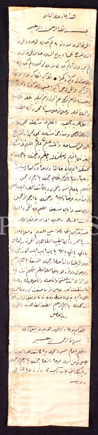 Deri mahfazası içinde rulo kâğıtta Hızır İlyas Duası, 11x53 cm