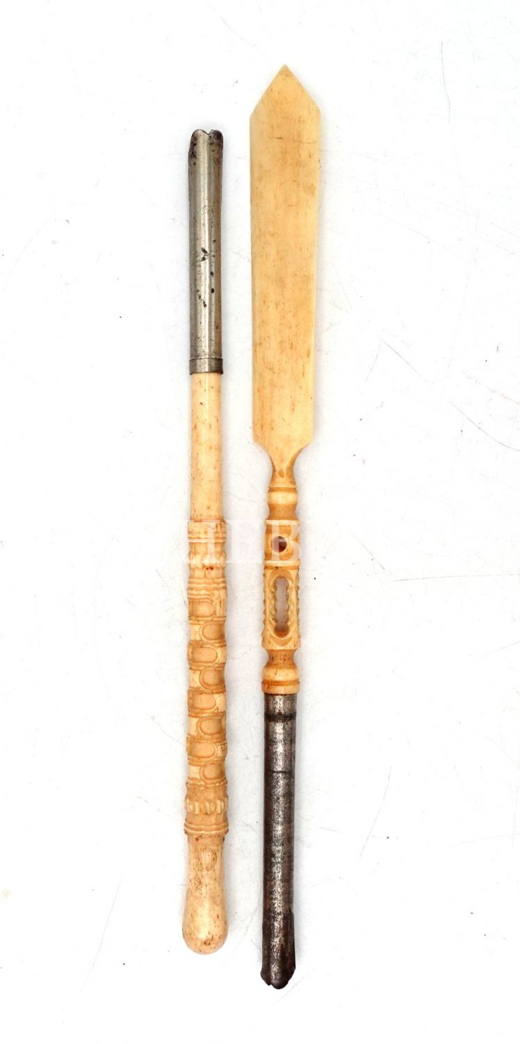 Fildişi mektup açacağı ve divit kalem sapı, kutu: 4x23 cm