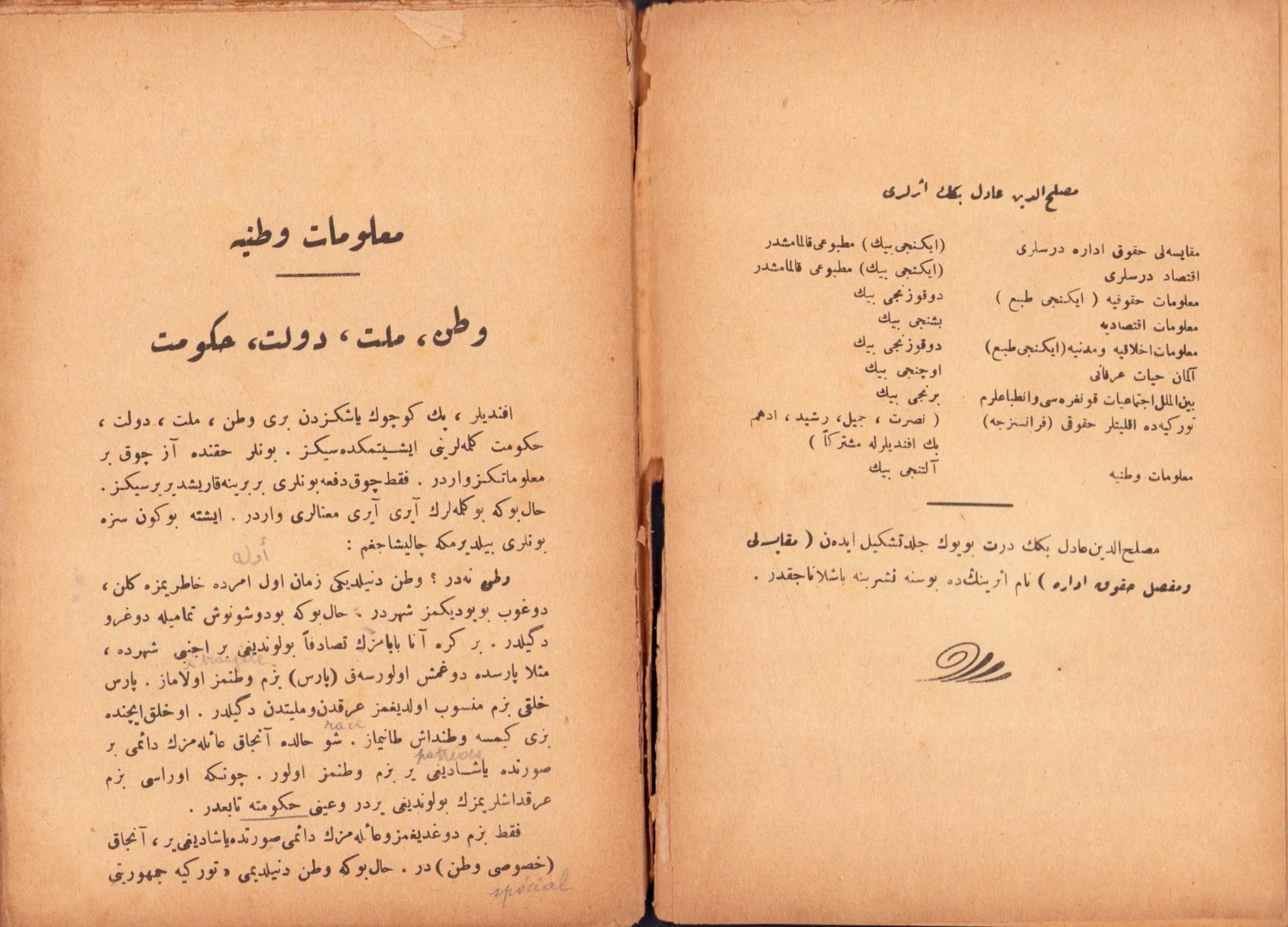 Osmanlıca Cumhuriyet Çocuklarına Malumat-ı Vataniye - İlk mektep beşinci sınıf, Muslihiddin Adil, Orhaniye Matbaası, İstanbul, sırtı haliyle,