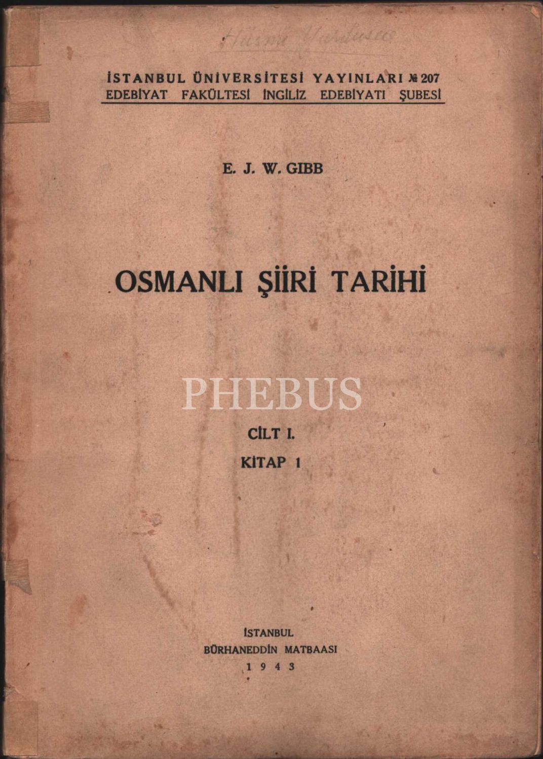 OSMANLI ŞİİRİ TARİHİ (1. Cilt) E. J. W. Gibb, İstanbul Üniversitesi Yayınları, 1943, 125 sayfa