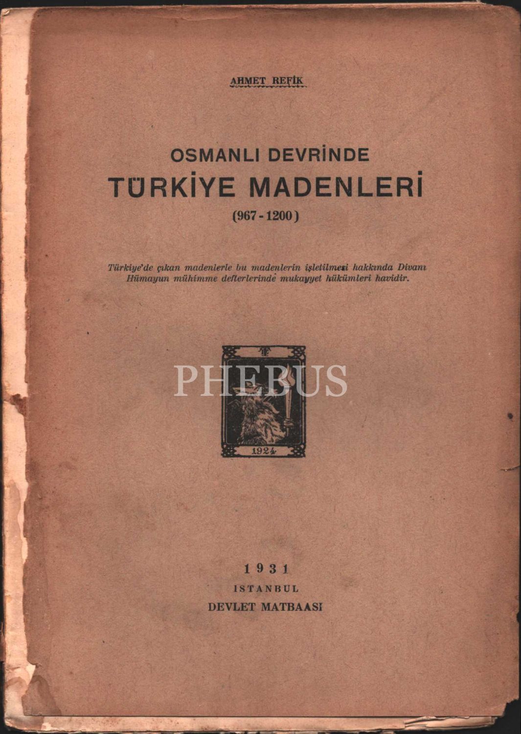 OSMANLI DEVRİNDE TÜRK MADENLERİ, Ahmet Refik, Devlet Matbaası, 1931, 60 sayfa