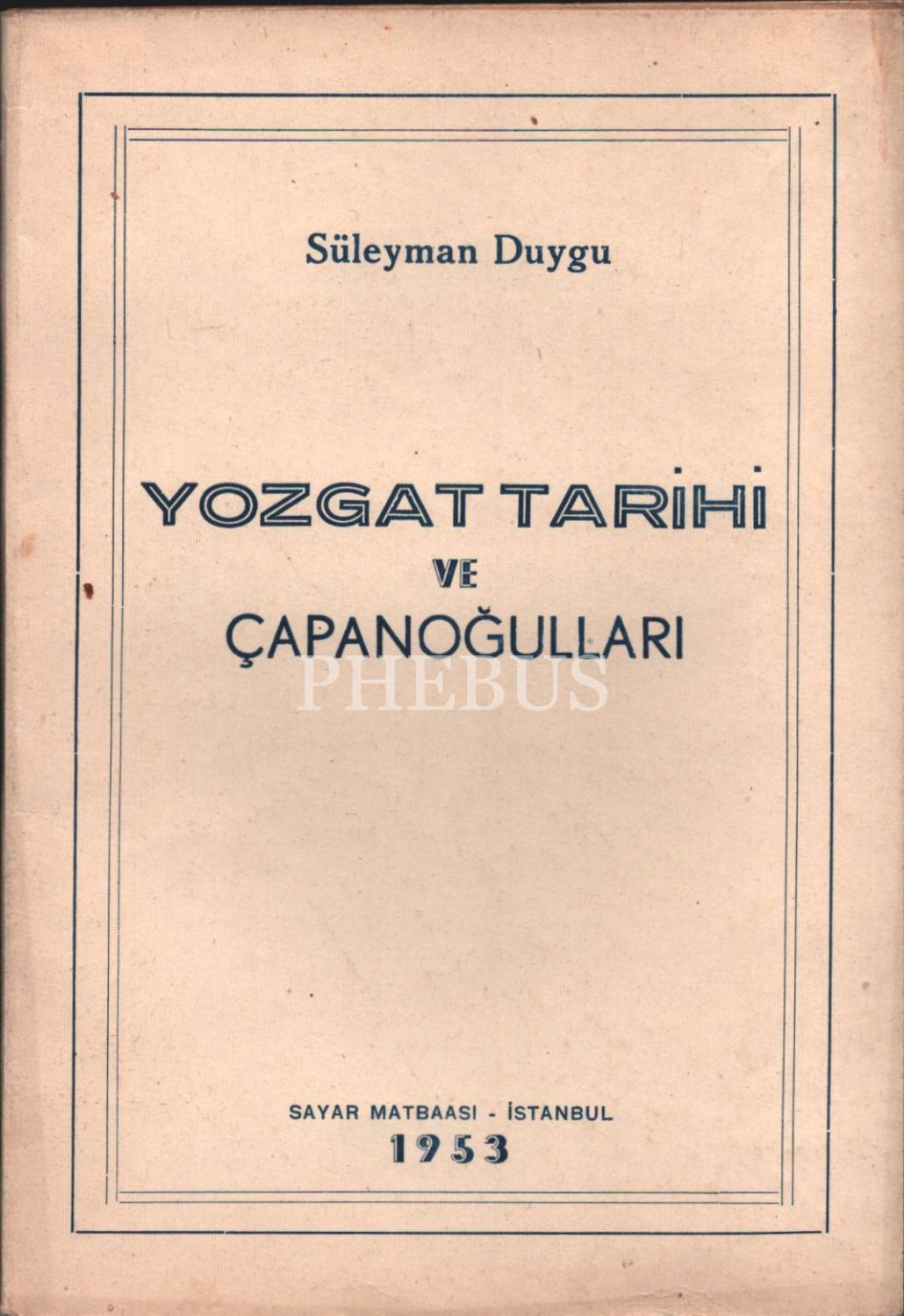 YOZGAT TARİHİ VE ÇAPANOĞULLARI, Süleyman Duygu, Sayar Matbaası, 1953, 49 sayfa