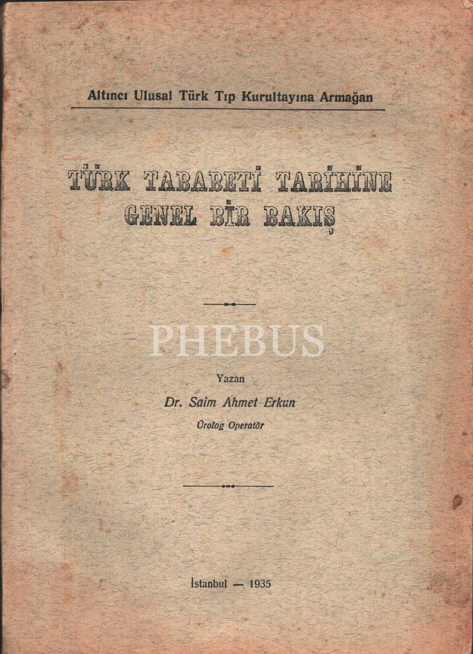 TÜRK TABABETİ TARİHİNE GENEL BİR BAKIŞ, Saim Ahmet Erkun, Şirketi Mürettibiye Matbaası, 1935, 86 sayfa