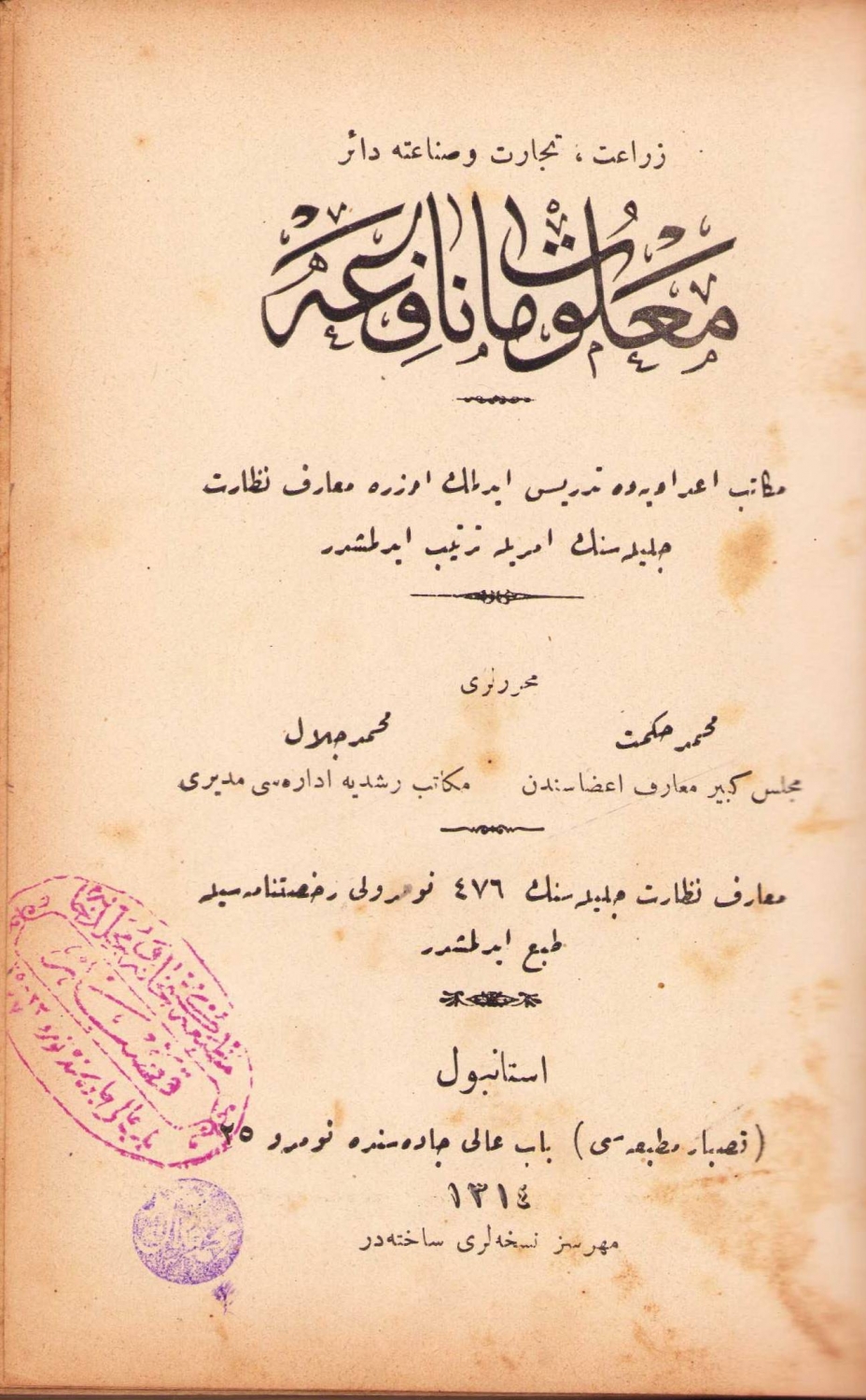 3. Ziraat, Ticaret ve Sanata Dair Malumat-ı Nafia, Mehmet Hikmet - Mehmed Celal, Kasbar Matbaası, İstanbul, 1314, bol resimli, 288 sayfa, ÖZEGE; 23819.