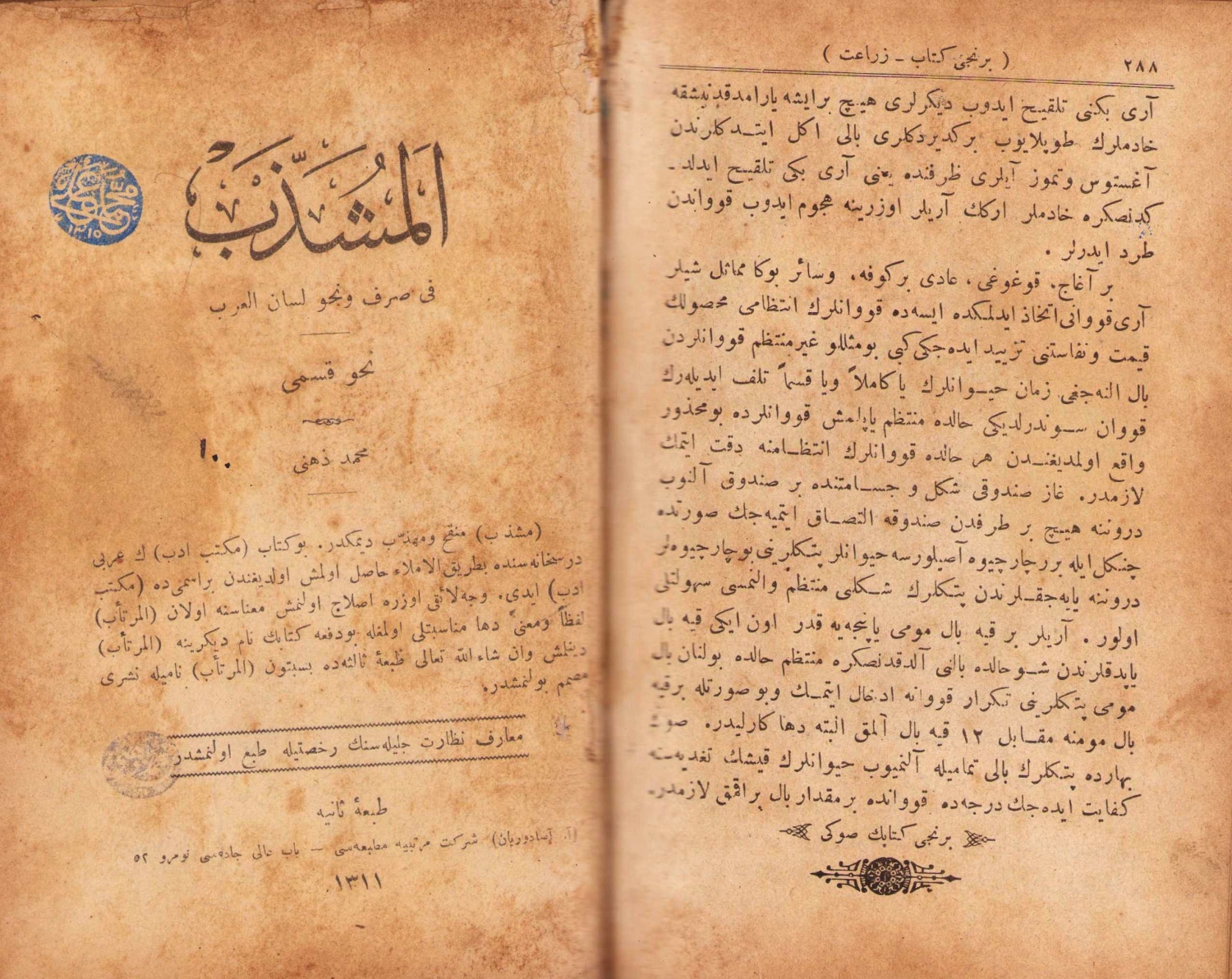4. El müşezzeb fi Sarf ve Nahv - i Lisanü'l - Arab: Nahv Kısmı, Mehmet Zihni, A. Asaduryan Matbaası, İstanbul, 1311, 140 sayfa,