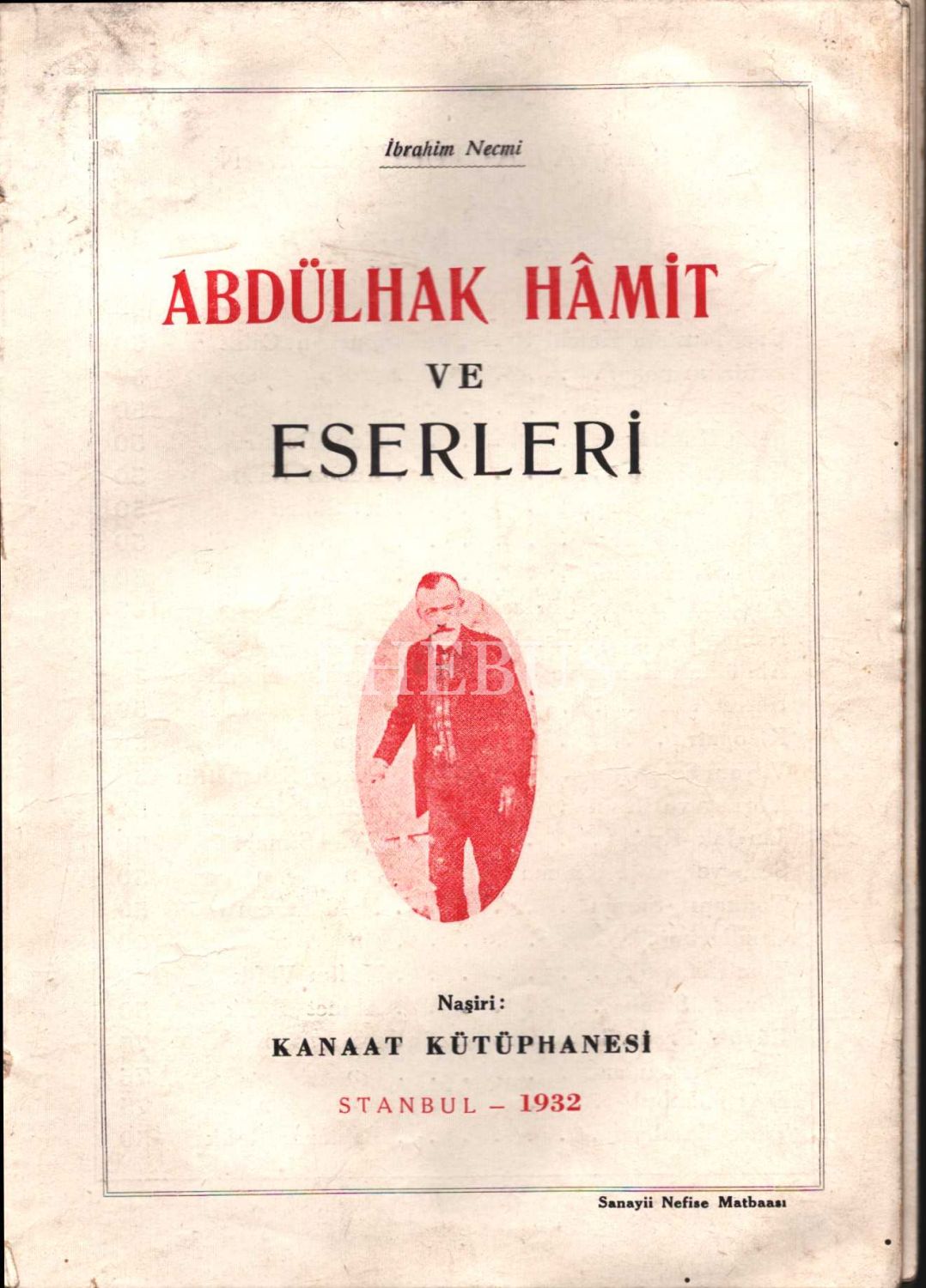 ABDÜLHAK HÂMİT VE ESERLERİ, İbrahim Necmi, Kanaat Kütüphanesi, 1932, 93 sayfa