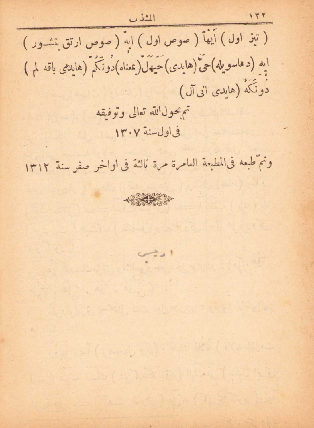 El Müşezzeb fi Sarf ve Nahv - i Lisanü'l - Arab: Sarf Kısmı, Mehmet Zihni, Matbaa-i Amire, 1312, Osmanlıca, 122 sayfa, 11x16 cm