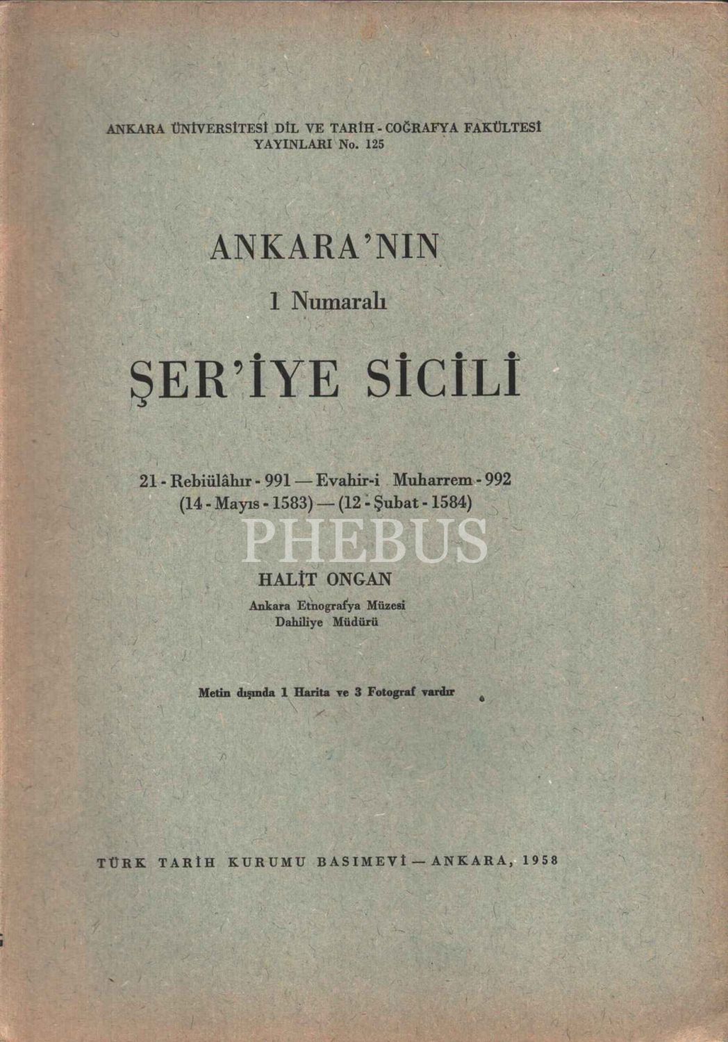 ANKARA´NIN 1 NUMARALI ŞER´İYE SİCİLİ, Halit Ongan, A. Ü. DTCF Yayınları, 1958, 200 sayfa