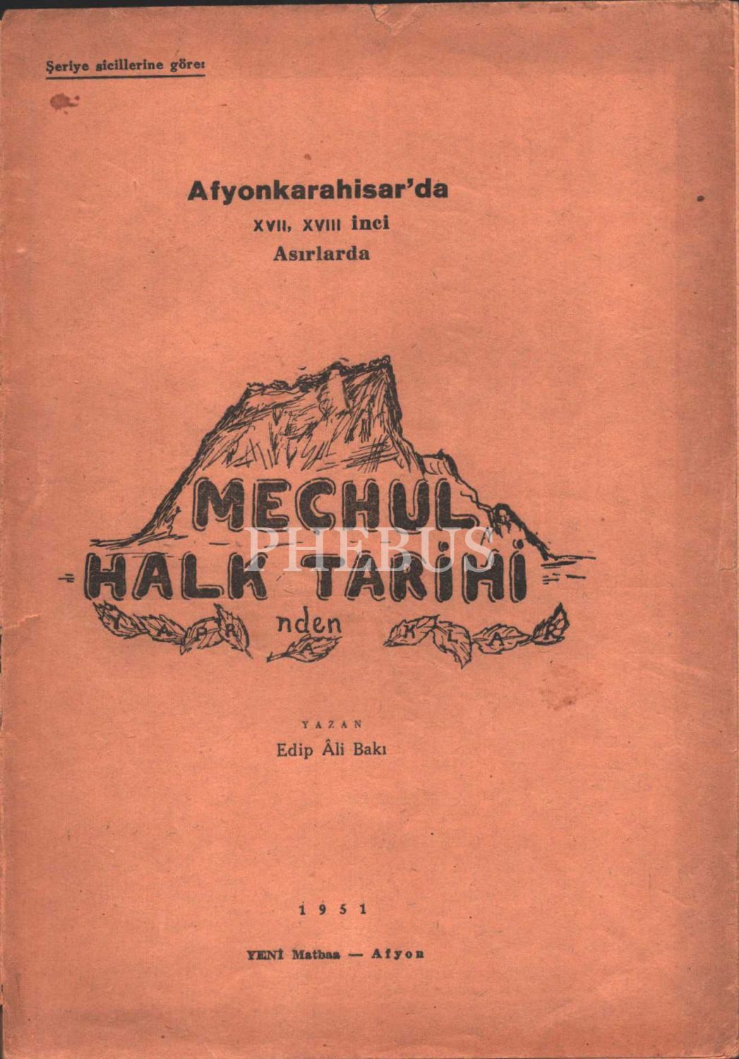 Afyonkarahisar´da XVII., XVIII. Asırlarda MEÇHUL HALK TARİHİ´nden, Edip Âli Bakı, Yeni Matbaa, 1951, 120 sayfa