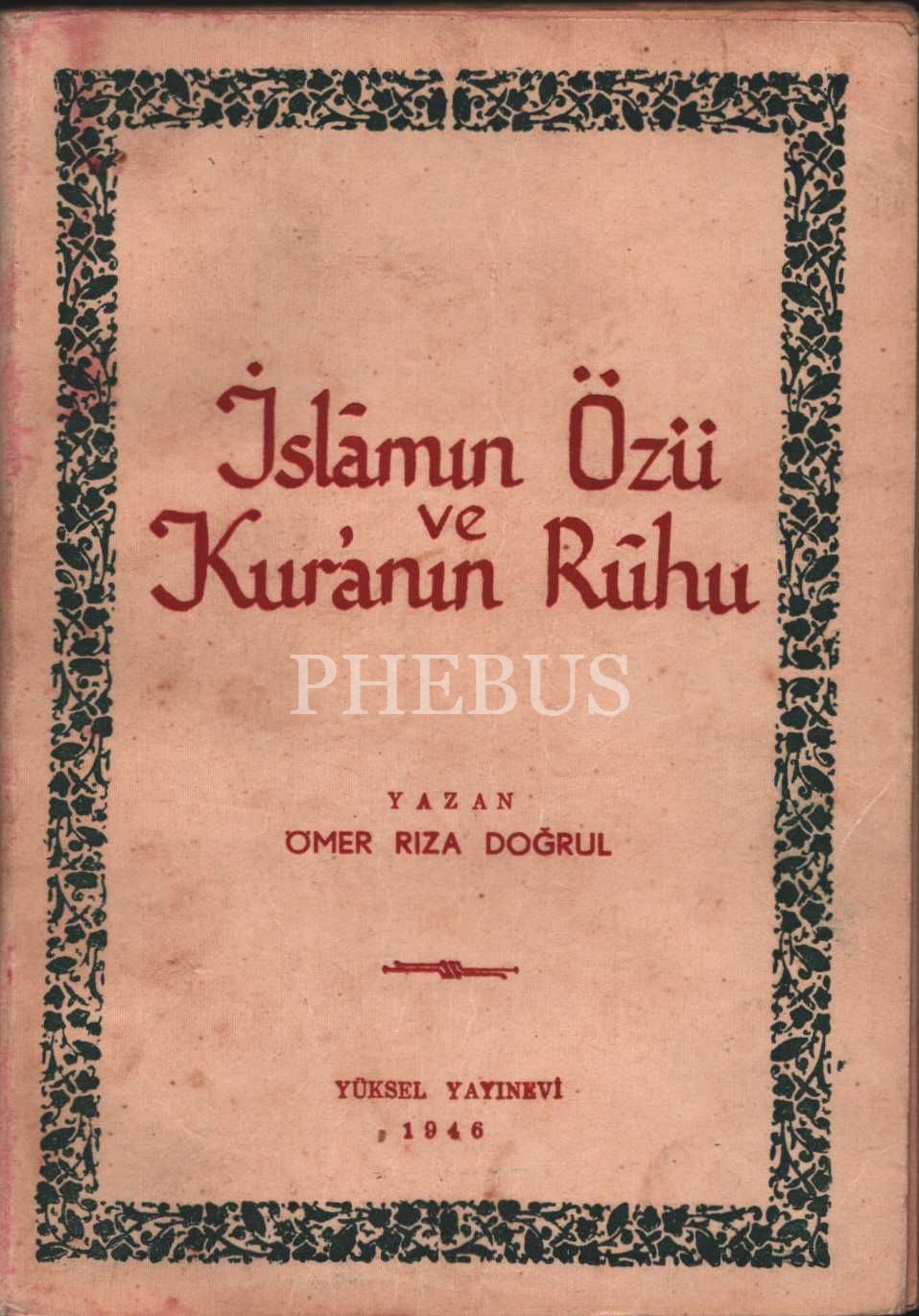 İSLÂMIN ÖZÜ VE KUR´ANIN RÛHU, Ömer Rıza Doğrul, Yüksel Yayınevi, 1946, 243 sayfa