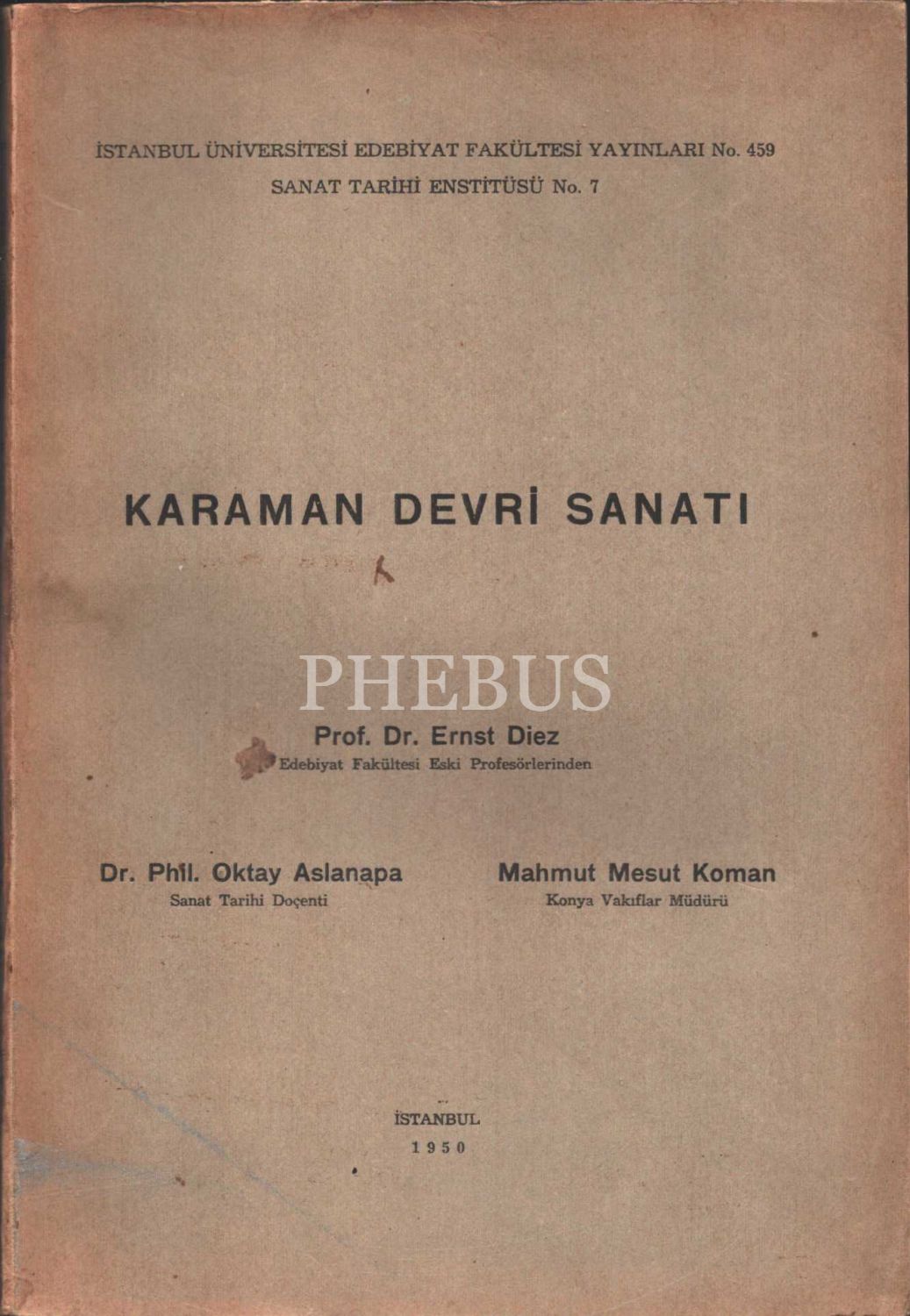 KARAMAN DEVRİ SANATI, Ernst Diez-Oktay Aslanapa-Mahmut Mesut Koman, İÜ Edebiyat Fakültesi Yayınları, 1950, 219 sayfa