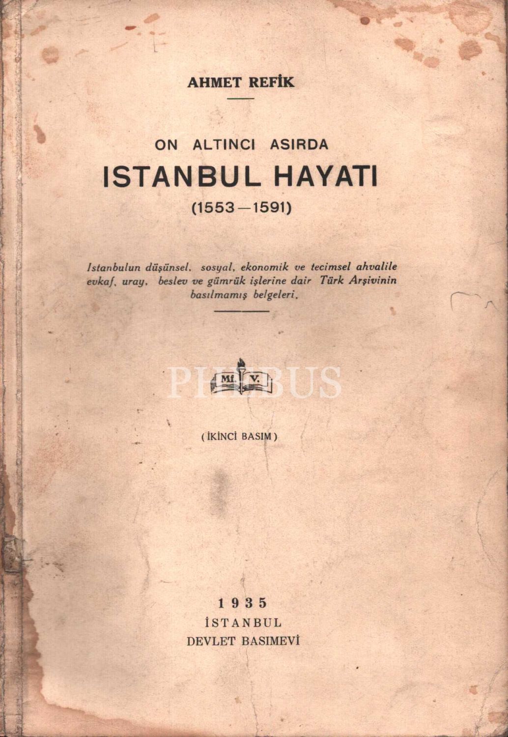 ON ALTINCI ASIRDA İSTANBUL HAYATI (1553-1591), Ahmet Refik, İstanbul Devlet Basımevi, 1935, 155 sayfa