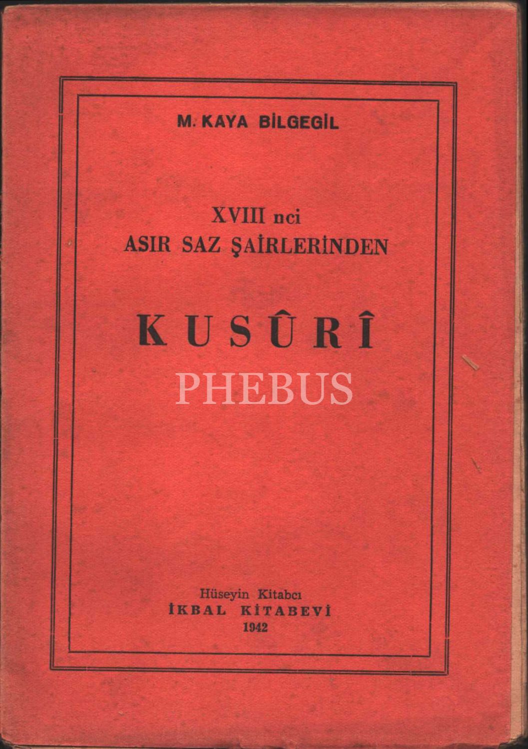 XVIII. ASIR SAZ ŞAİRLERİNDEN KUSÛRÎ, M. Kaya Bilgegil, İkbal Kitabevi, 1942, 119 sayfa