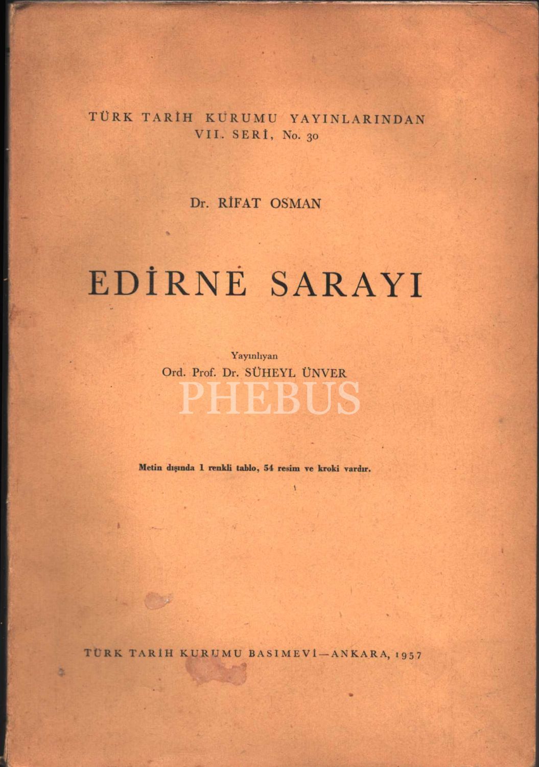 EDİRNE SARAYI, Dr. Rıfat Osman, yay. Ord. Prof Dr. Süheyl Ünver, Türk Tarih Kurumu Yayınları, 1957, 196 sayfa