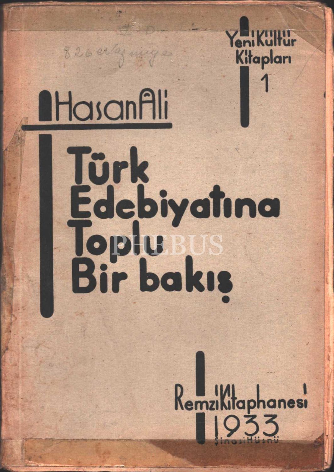 TÜRK EDEBİYATINA TOPLU BİR BAKIŞ, Hasan Ali, Remzi Kitaphanesi, 1933, 165 sayfa