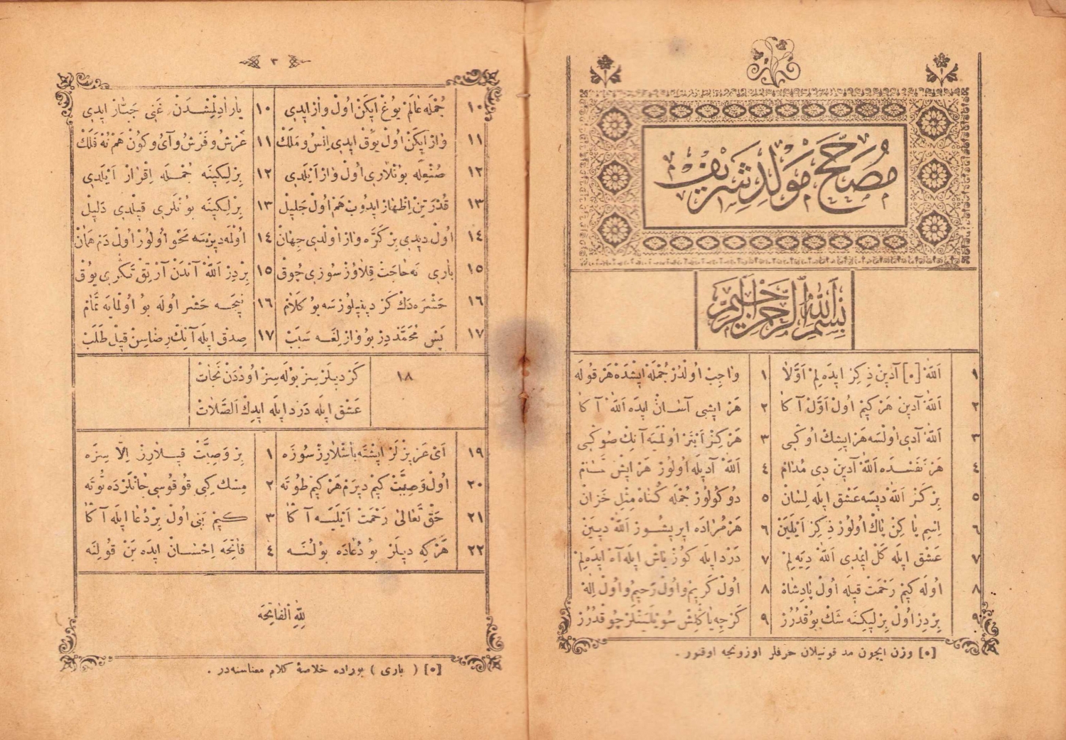 Osmanlıca Musahhah Mevlid-i Şerif, Süleyman Çelebi, düzenleyen; Rıza, Mahmud Bey Matbaası, İstanbul, 1324, cildi yok, 31 sayfa, 13x18 cm