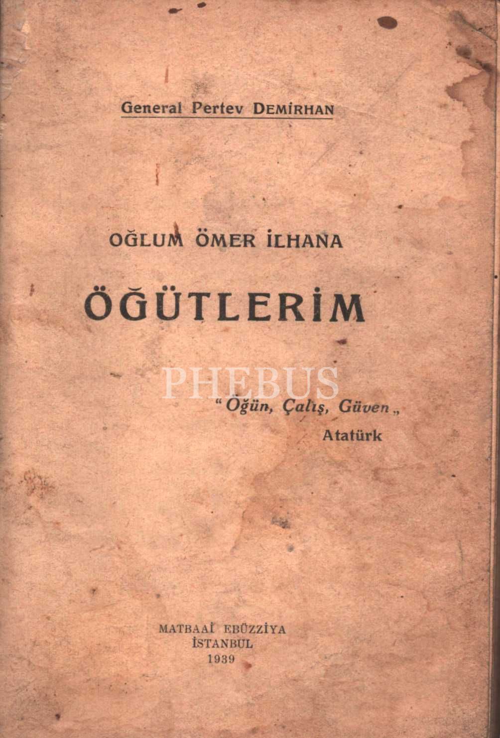 OĞLUM ÖMER İLHANA ÖĞÜTLERİM, General Pertev Demirhan, Matbaai Ebuzziya, 1939, 112 sayfa