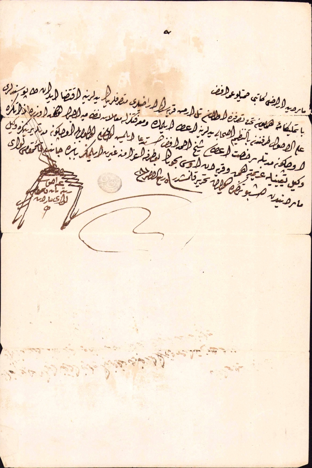 Osmanlıca Mardin Tel-Armen (Kızıltepe) arazi katibi Şeyh Ahmet Efendinin Tel-Armen'deki (Kızıltepe) arsalara tapu verilmesi konulu belge, 9x28 cm