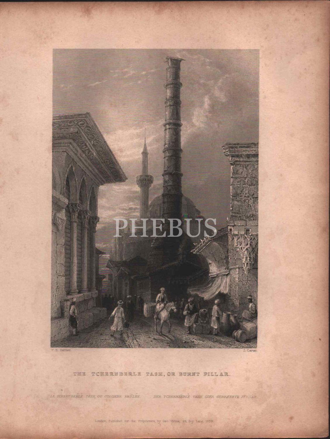 Çemberlitaş Sütunu gravürü, London 1839, 20x26 cm