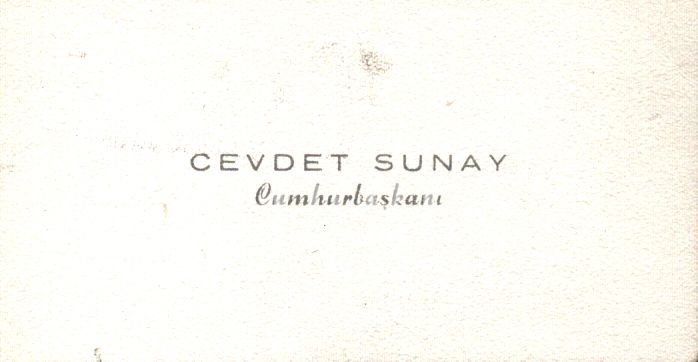 Cumhurbaşkanı Cevdet Sunay´a ait kartvizit, 5x9 cm