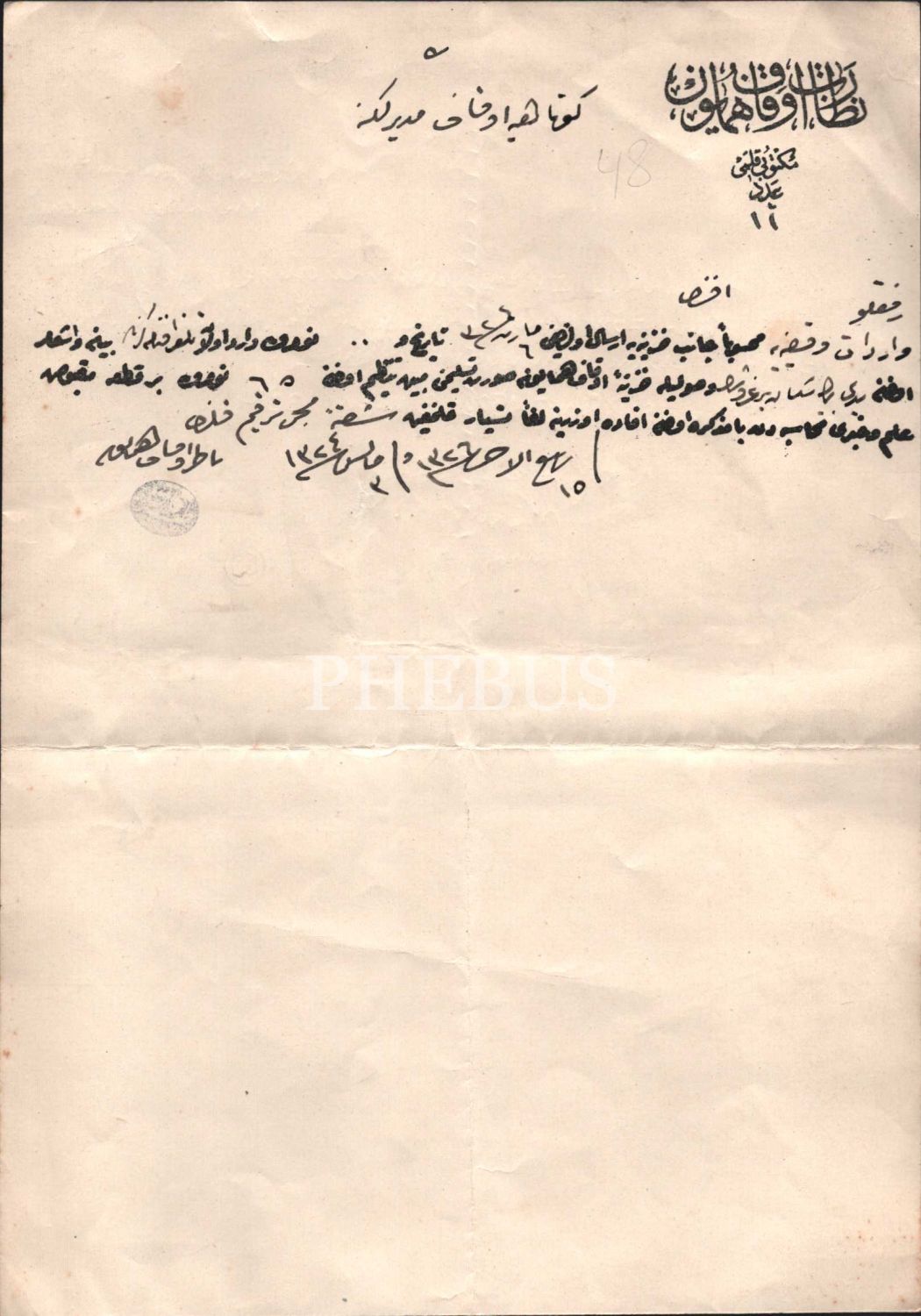 Nezaret-i Evkaf-ı Hümayun Mektubi Kalemi antetli, vakıflar gelirinin teslim alındığına dair 1324 tarihli evrak, 20x29 cm