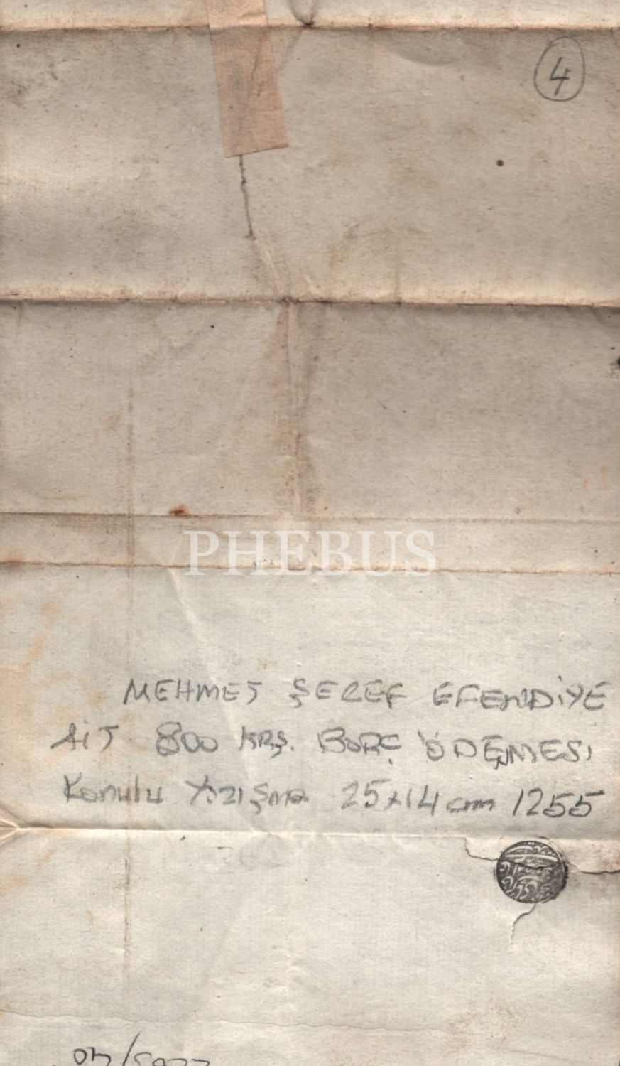 Mehmed Şeref Efendi´ye ait borç ödemesi ile ilgili 1255 tarihli yazışma, 14x25 cm